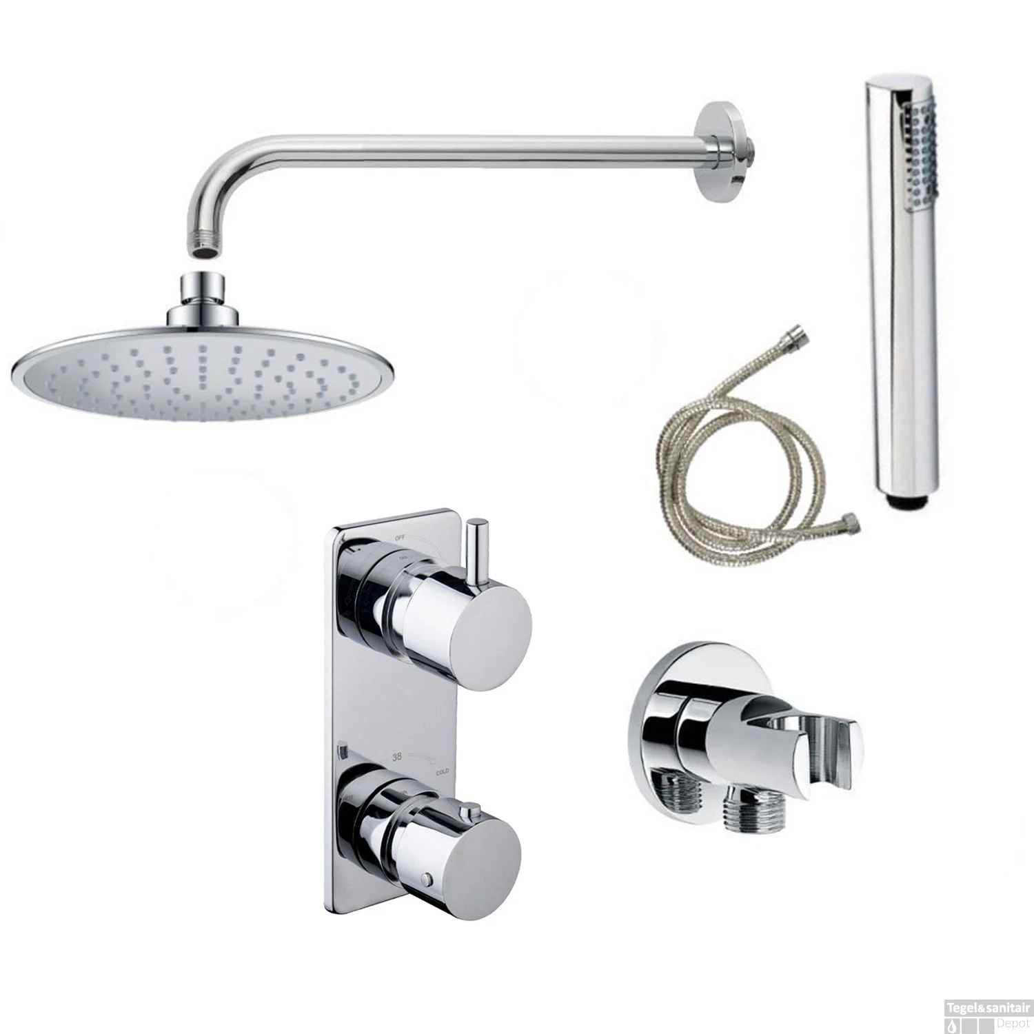 Inbouwthermostaat kranen van het merk Wiesbaden staan garant voor kwaliteit en design. Deze regendouche set bevat alles wat u nodig heeft om uw douche compleet te maken. De regendoucheset wordt compleet met hoofddouche, Wanduitloop, douchethermostaat, inbouwdeel, handdouchehouder, handdouche en doucheslang geleverd! Alle artikelen in deze set zijn voorzien van een fraaie chrome afwerking.