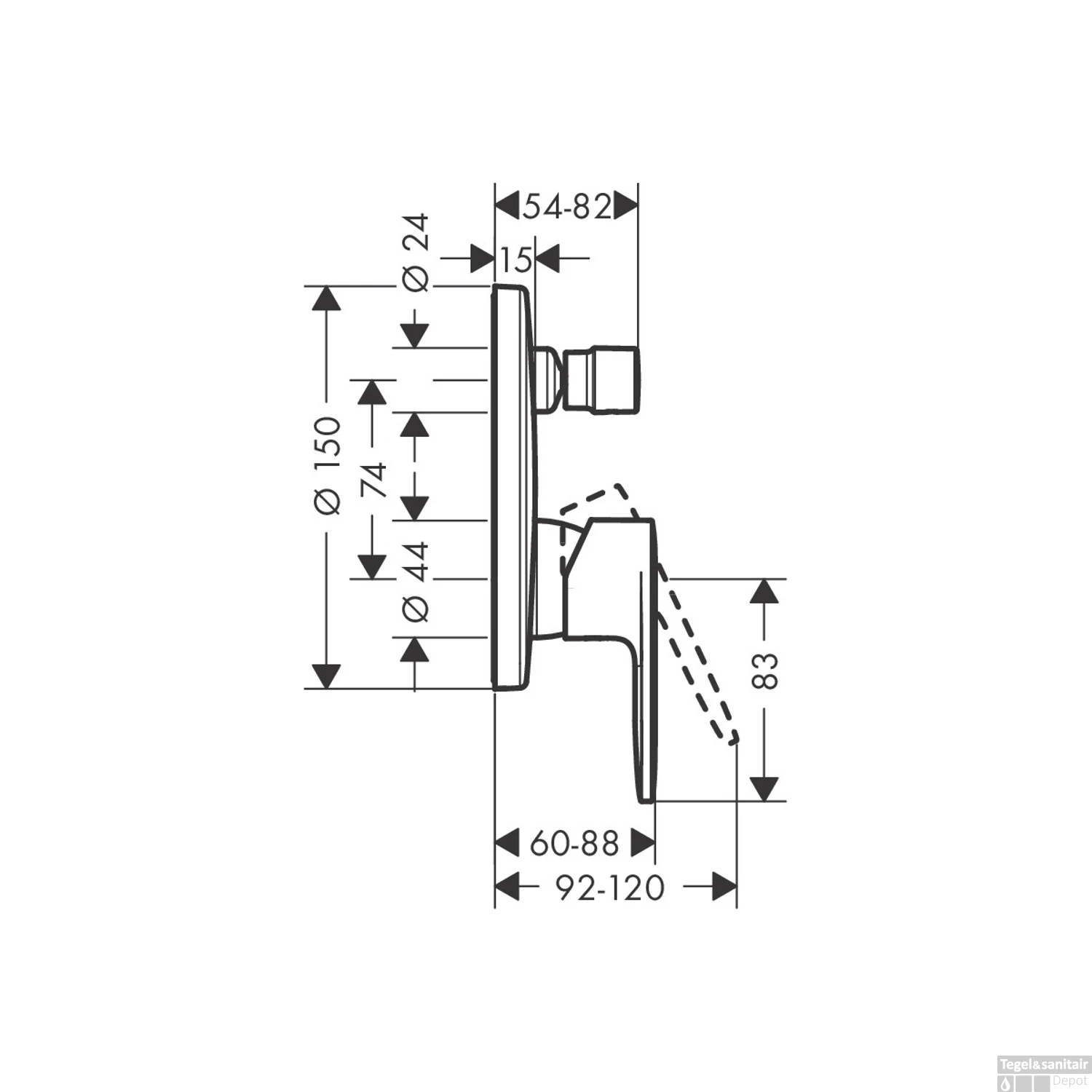 Specificaties Inbouw Badmengkraan HansGrohe Vernis Blend Eengreeps Chroom: