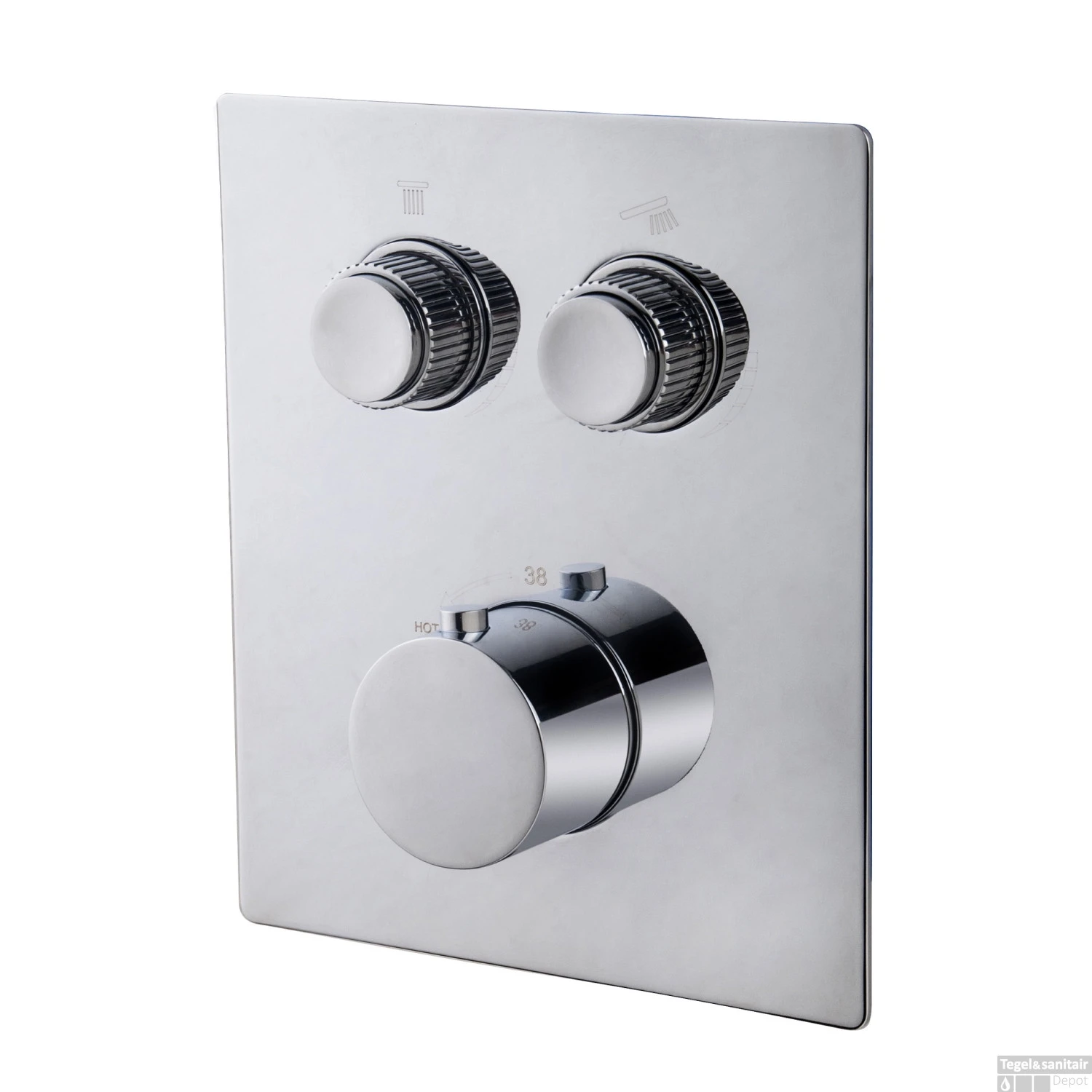De Caral Klik Pro van Boss & Wessing is een stijlvolle en hoogwaardige inbouwthermostaat met Smartcontrol. Dit Caral Klik Pro afbouwdeel voor de inbouwthermostaat 2-weg komt in de kleur chroom en beschikt over 2 functies.Zo kun je eenvoudig in één klik schakelen tussen de handdouche en hoofddouche. Door middel van de Smartcontrol bedieningsknoppen is de mengkraan gemakkelijk aan en uit te zetten. Daarnaast bepaal je door te draaien de gewenste waterdruk. De watertemperatuur is thermostatisch te regelen en heeft een begrenzer op 38 graden. Dit maakt dat de kraan ook veilig te gebruiken is door kinderen.