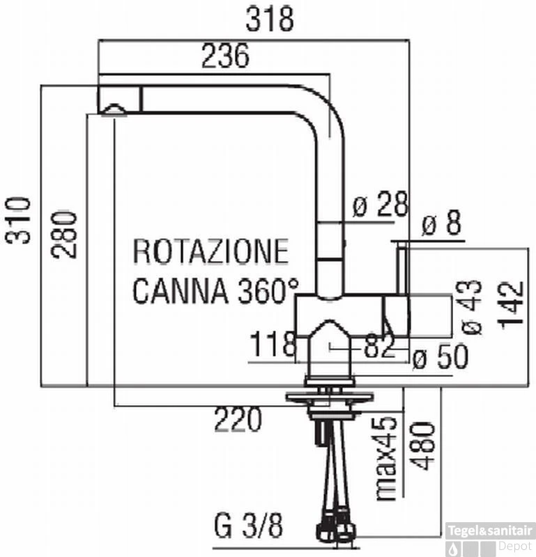 | Hoogte uitstroom | 28 cm |
