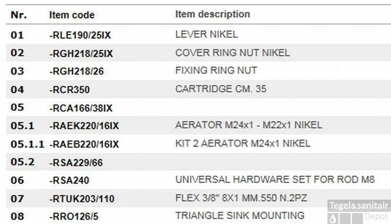 | Binnenwerk kraan | Keramisch |
