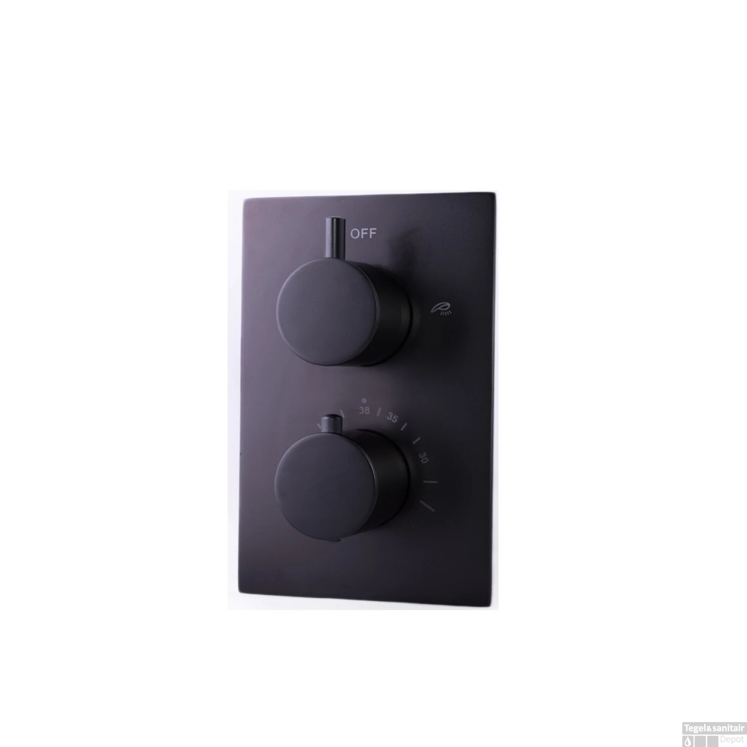De Exclusive badkraan van het merk Boss & Wessing is gemaakt van mat zwart messing. Mat zwart is een kleur die uitstekend tot recht komt in de moderne badkamer omdat deze kleur prima valt te combineren met witte elementen. Het betreft een thermostatische inbouw kraan die wordt geleverd inclusief een staaf handdoucheset met opsteekgarnituur en een doucheslang. Bovendien wordt deze complete set geleverd inclusief een inbouwdeel. De afdekplaat is voorzien van twee knoppen waarmee u eenvoudig de temperatuur en de kracht van de waterstraal instelt.