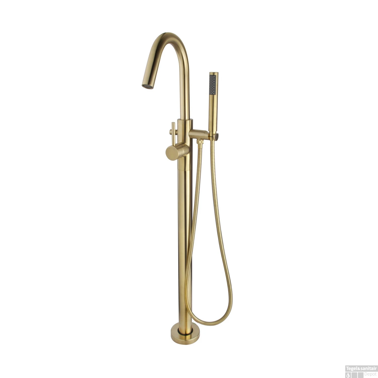 Badkraan Vrijstaand Wiesbaden Caral Mengkraan Compleet Geborsteld Messing Goud