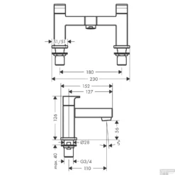 Badrandmengkraan HansGrohe Vernis Shape 2-Gats Met Stopkraan En Vernis Blend Handdouche Vario Chroom