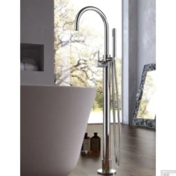 Afbouwdeel Hotbath Archie Vrijstaande Badmengkraan Draaibare Uitloop Geborsteld Messing PVD