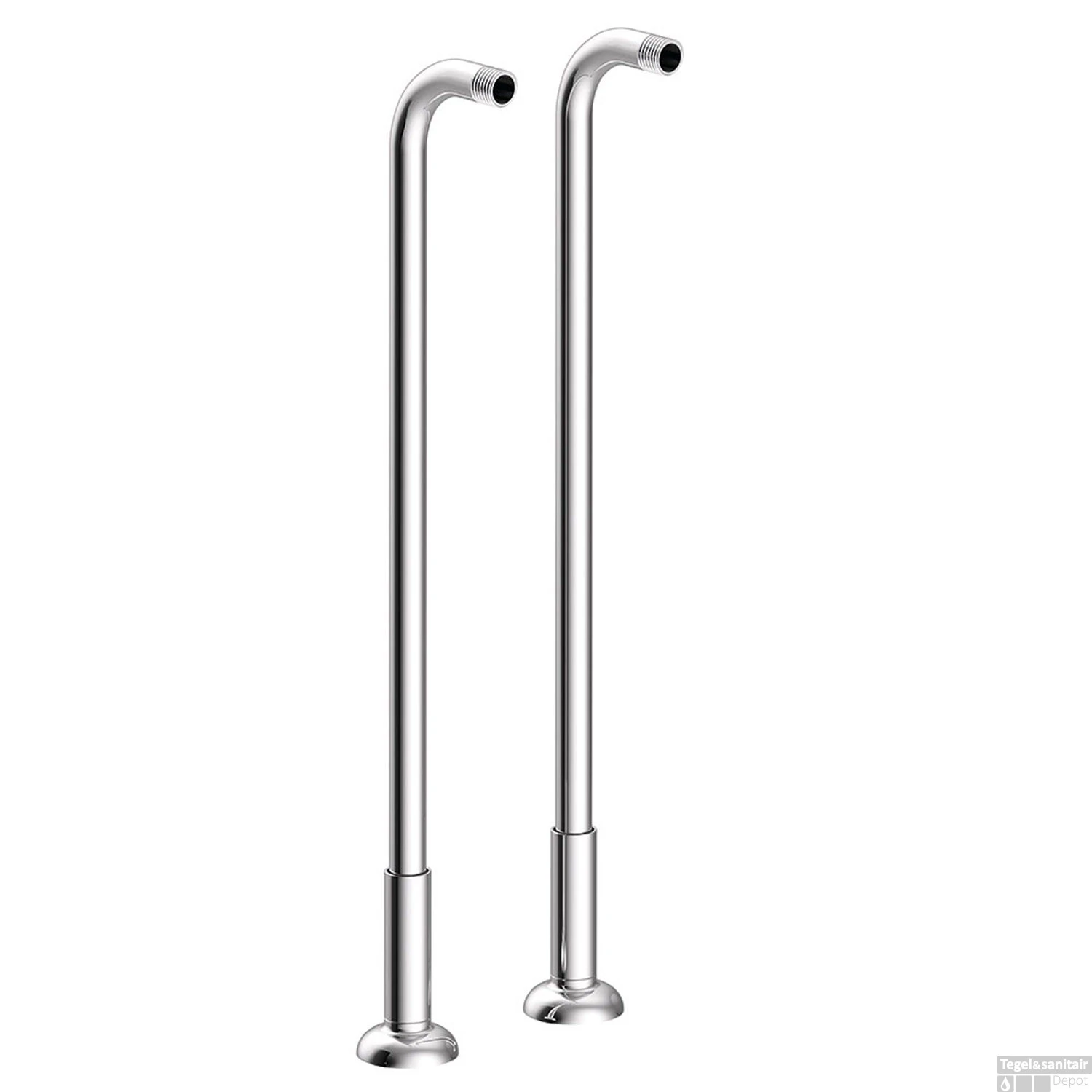 Deze badkraankoppelingen zijn 76.5 cm hoog en hebben een diepte van 12.3 cm. Door gebruik te maken van messing behouden deze badkraankoppelingen jarenlang zijn glans en kwaliteit. Deze zijn uitgevoerd in een Chroom kleur.