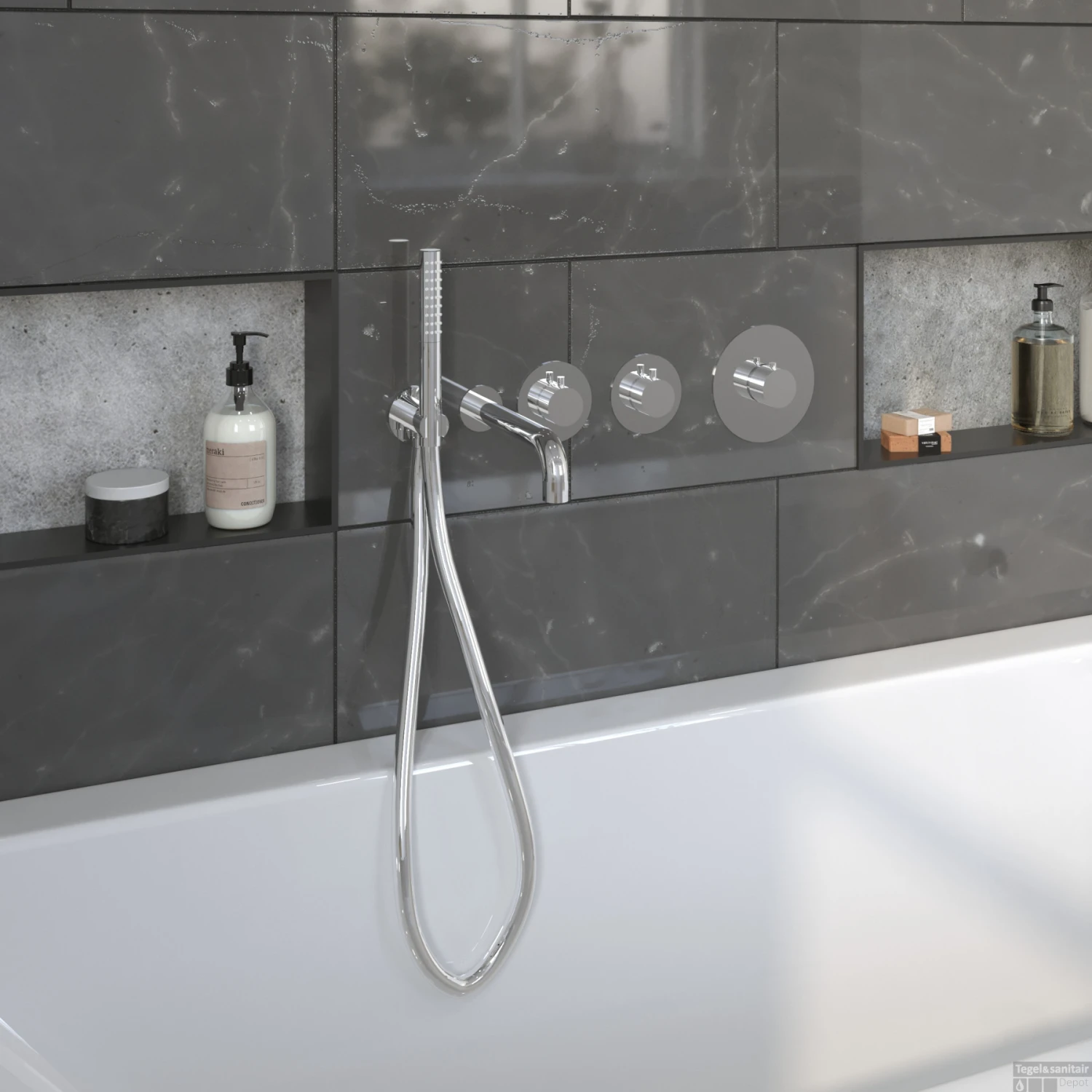 Een stijlvolle inbouw badkraanset voor bij uw bad. Met de set van Wiesbaden Dreams kunt u u badkamer compleet maken. Combineer de Chrome douchekraanset met een badwand met Chrome accenten en maak daarmee uw badkamer compleet. Deze luxe doucheset is precies wat uw badkamer nodig heeft.