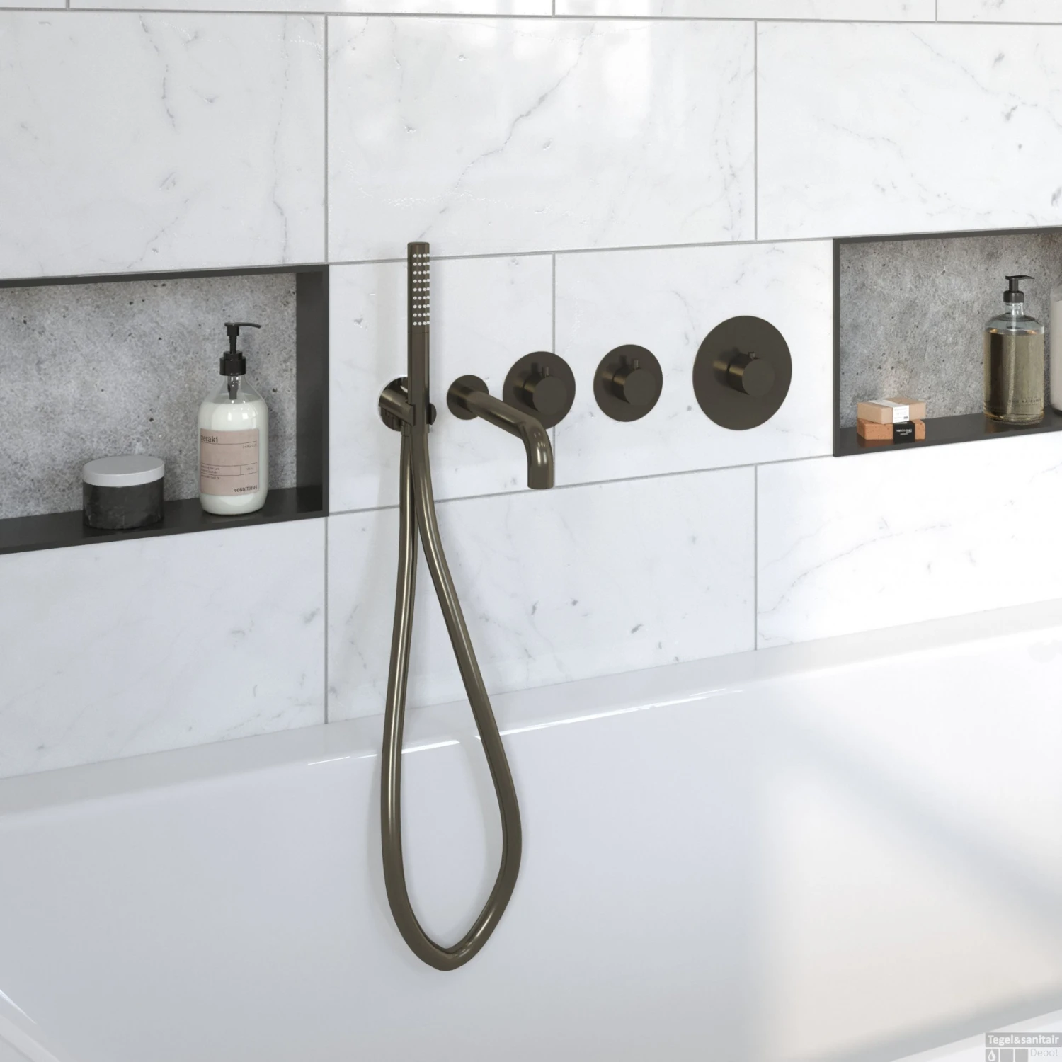 Een stijlvolle inbouw badkraanset voor bij uw bad. Met de set van Wiesbaden Dreams kunt u u badkamer compleet maken. Combineer douchekraanset met een badwand met gunmetal accenten en maak daarmee uw badkamer compleet. Deze luxe doucheset is precies wat uw badkamer nodig heeft.