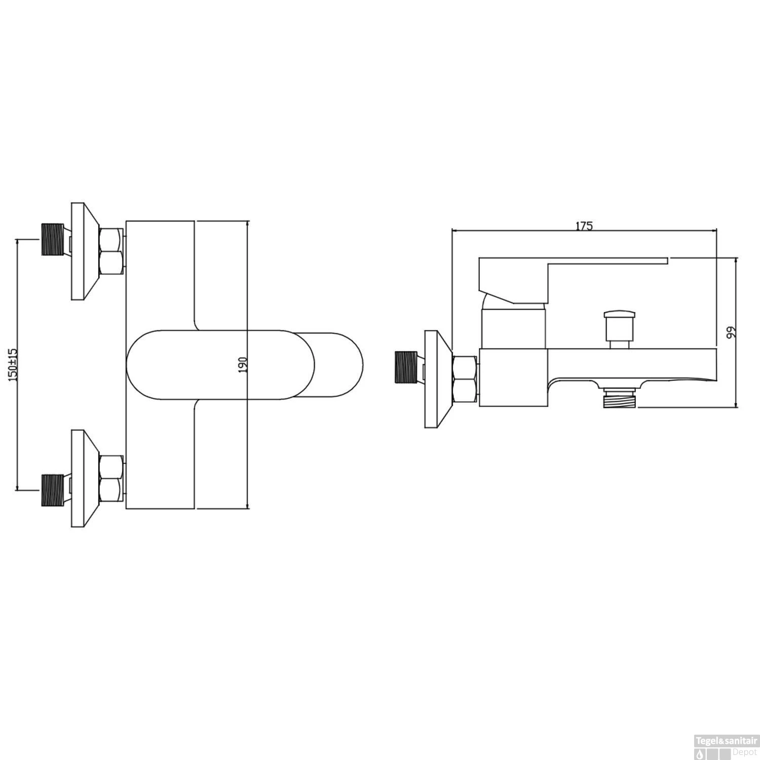 De kraan heeft een breedte van 19 cm en een hoogte van 9.9 cm. De kraan heeft een diepte van 17.5 cm.