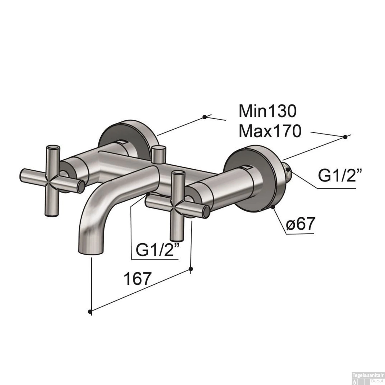 De mengkraan is voorzien van twee kruisgreep knoppen. Met de één reguleert u de verandering van de temperatuur van het water. Met de andere knop bepaalt u de stroomsnelheid. Daarnaast heeft u met een kruisgreep ook meer houvast bij het openen en dichtdoen van de kraan.