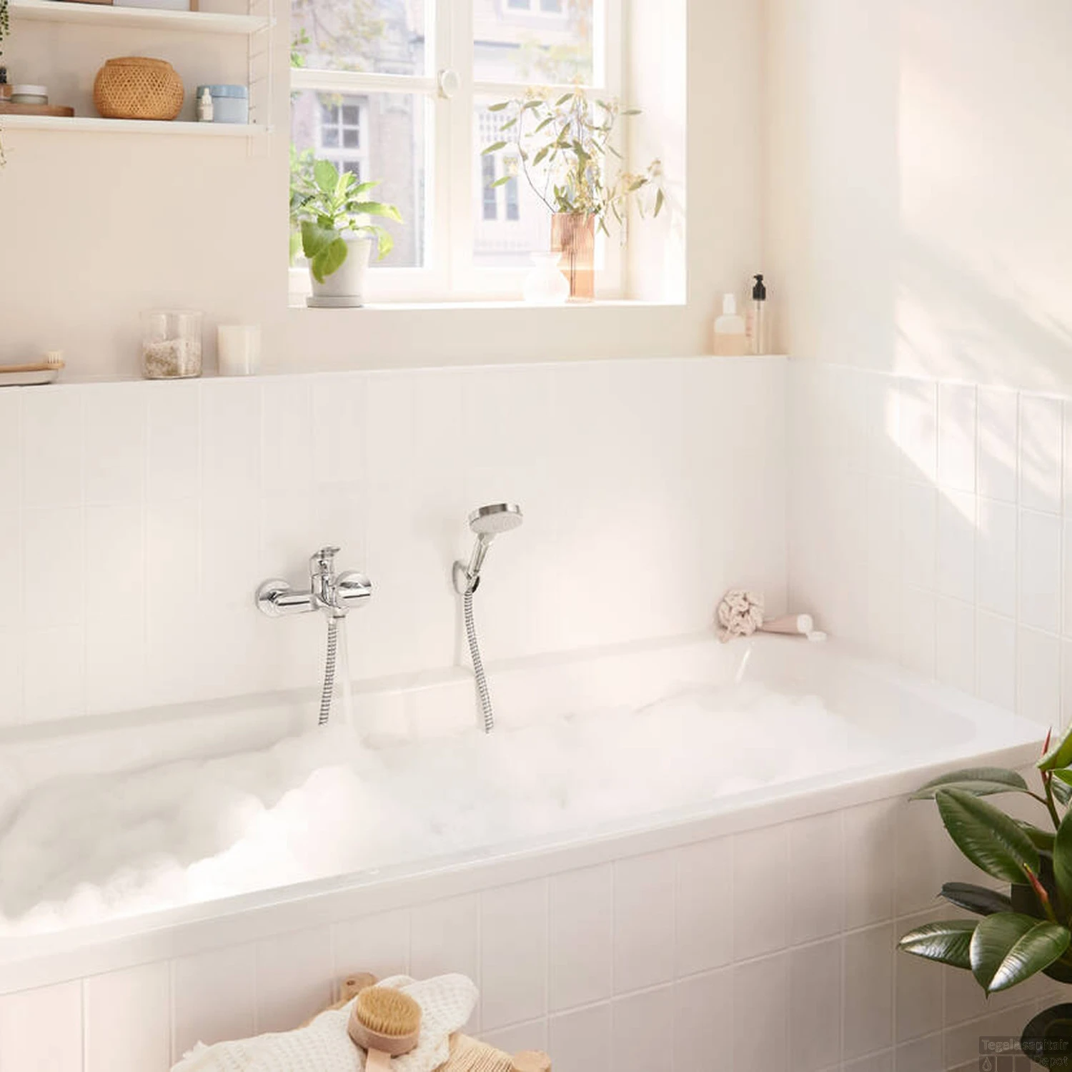 Met deze stijlvolle badmengkraan heeft u alles in huis voor een heerlijk bad! U kunt aan de badkraan namelijk ook uw handdouche aansluiten! Met de omstelling bepaalt u of u het water uit de badkraan wilt laten stromen, of dat u het water doorstuurt naar de handdouche via een doucheslang. De omstelling wordt automatisch gereset wanneer u de kraan uit zet.