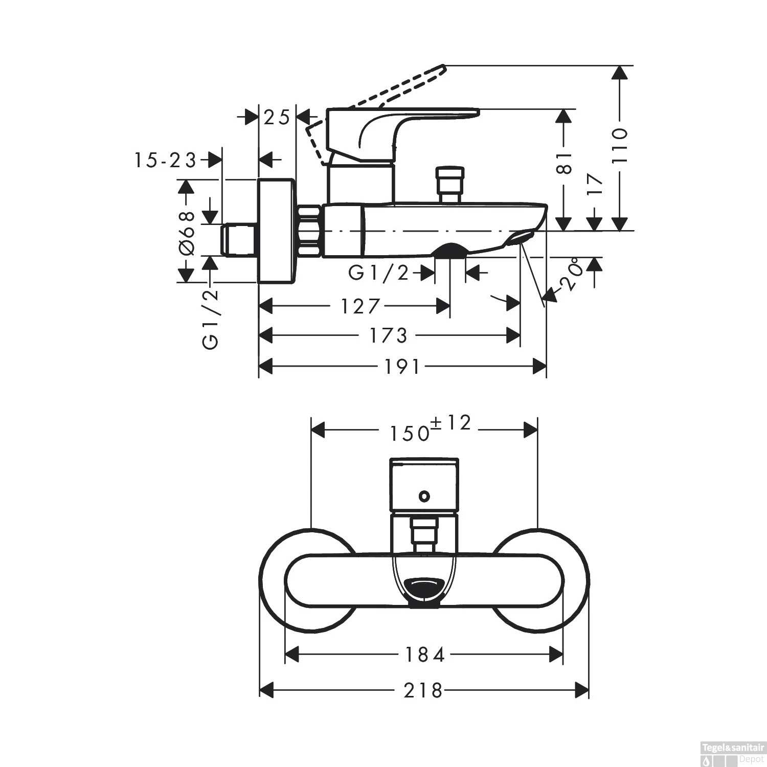 Specificaties Badmengkraan Opbouw HansGrohe Rebris S Eengreeps Chroom: