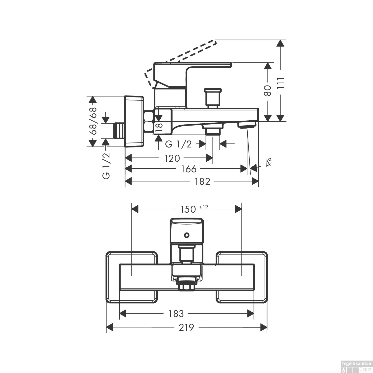 Specificaties Badmengkraan Opbouw HansGrohe Vernis Shape Eengreeps Mat Zwart: