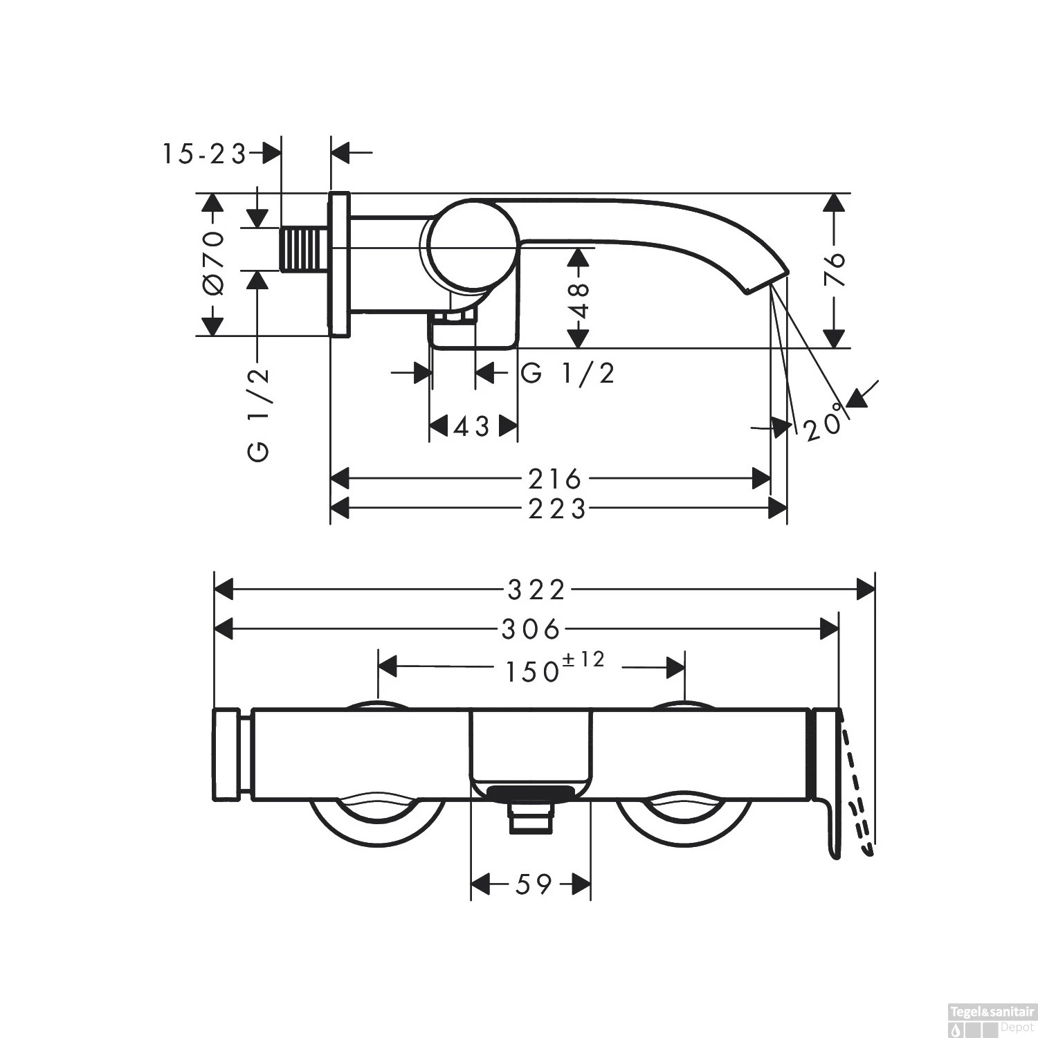 - Diepte: 22,3 cm