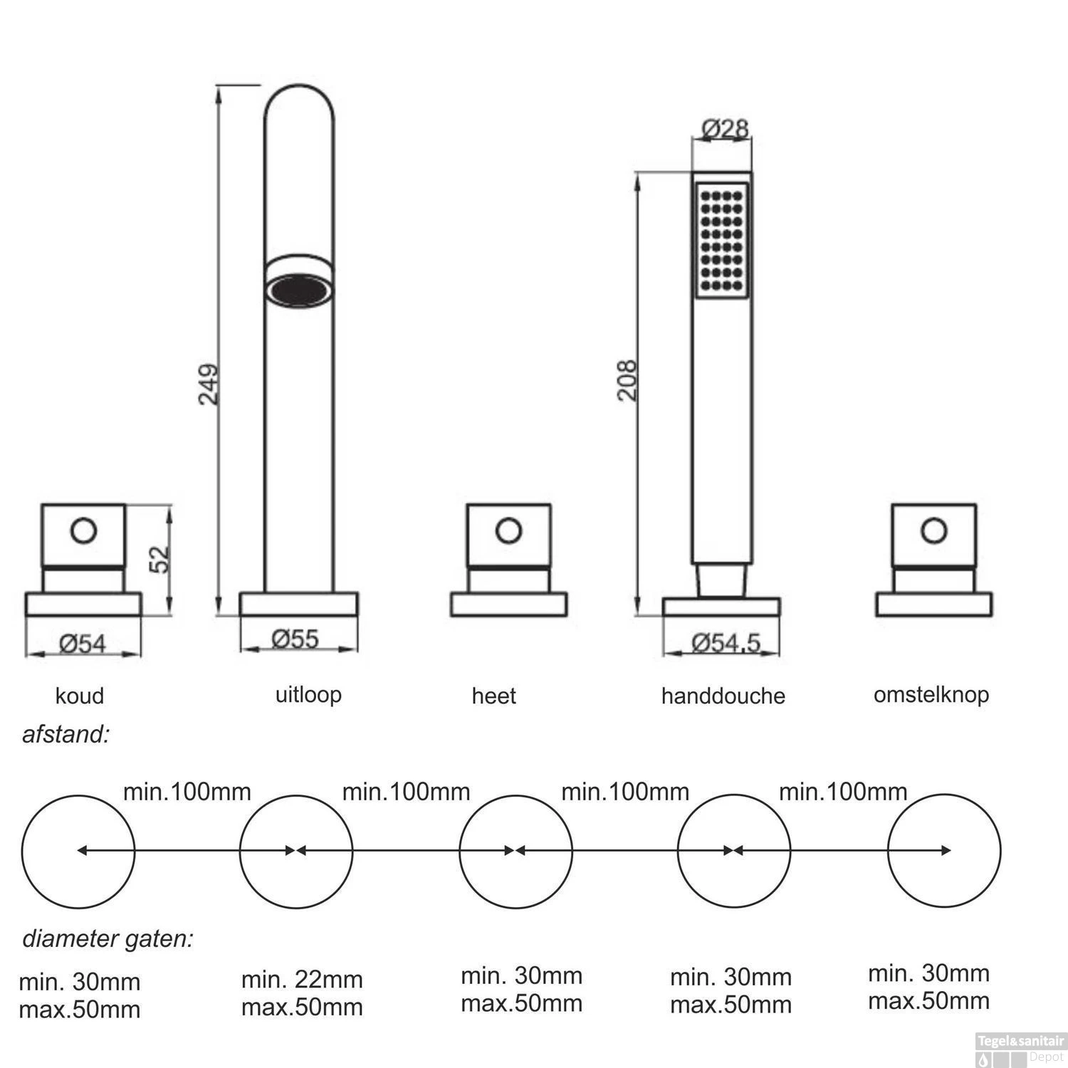 - – 1 stuk omstelknop (keuze uitloop of handdouche)