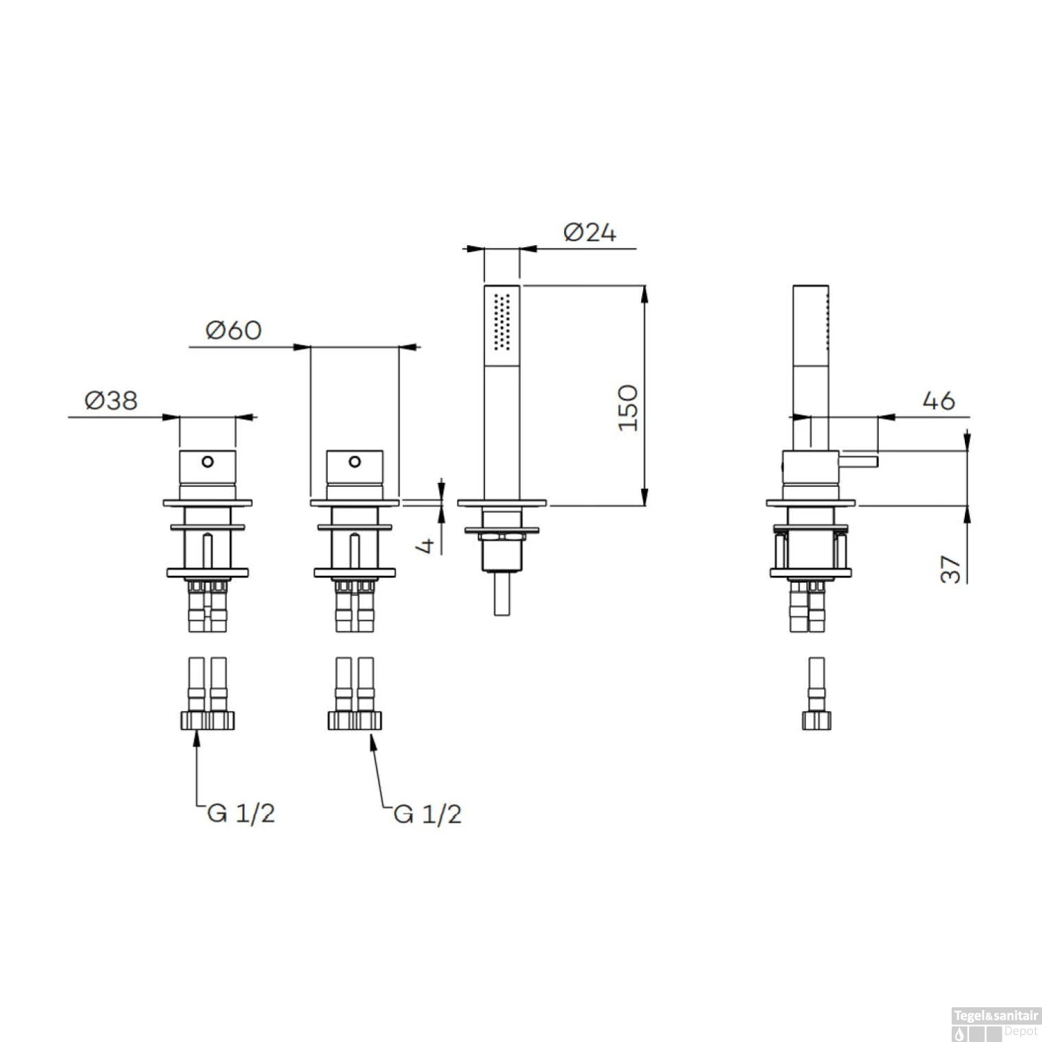 Specificaties Badrandcombinatie Lagoo Garda met Mengkraan, Uitloop, Omstel en Handdouche Messing Geborsteld Nikkel: