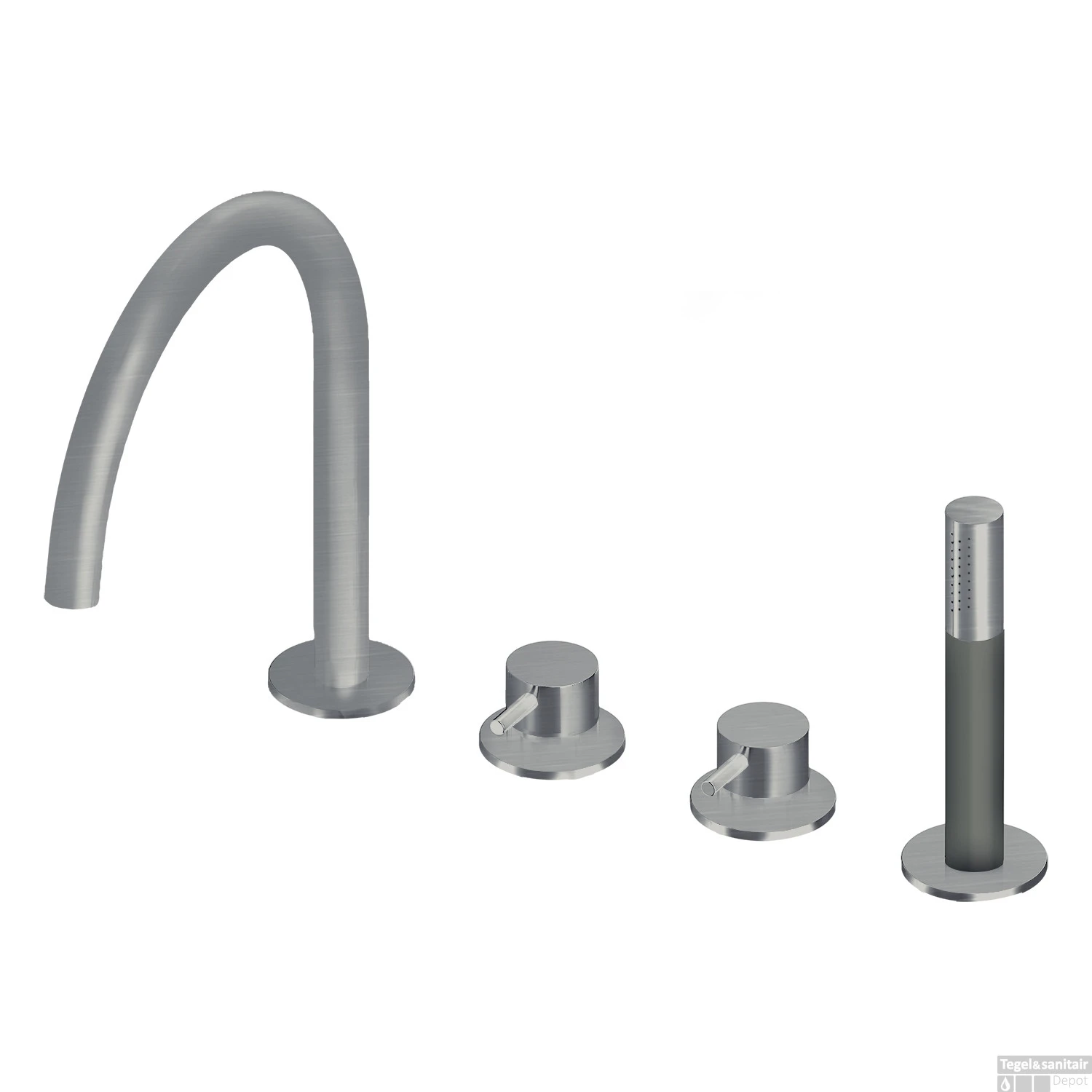 Badrandcombinatie Lagoo Garda met Mengkraan, Uitloop, Omstel en Handdouche Messing Geborsteld Nikkel