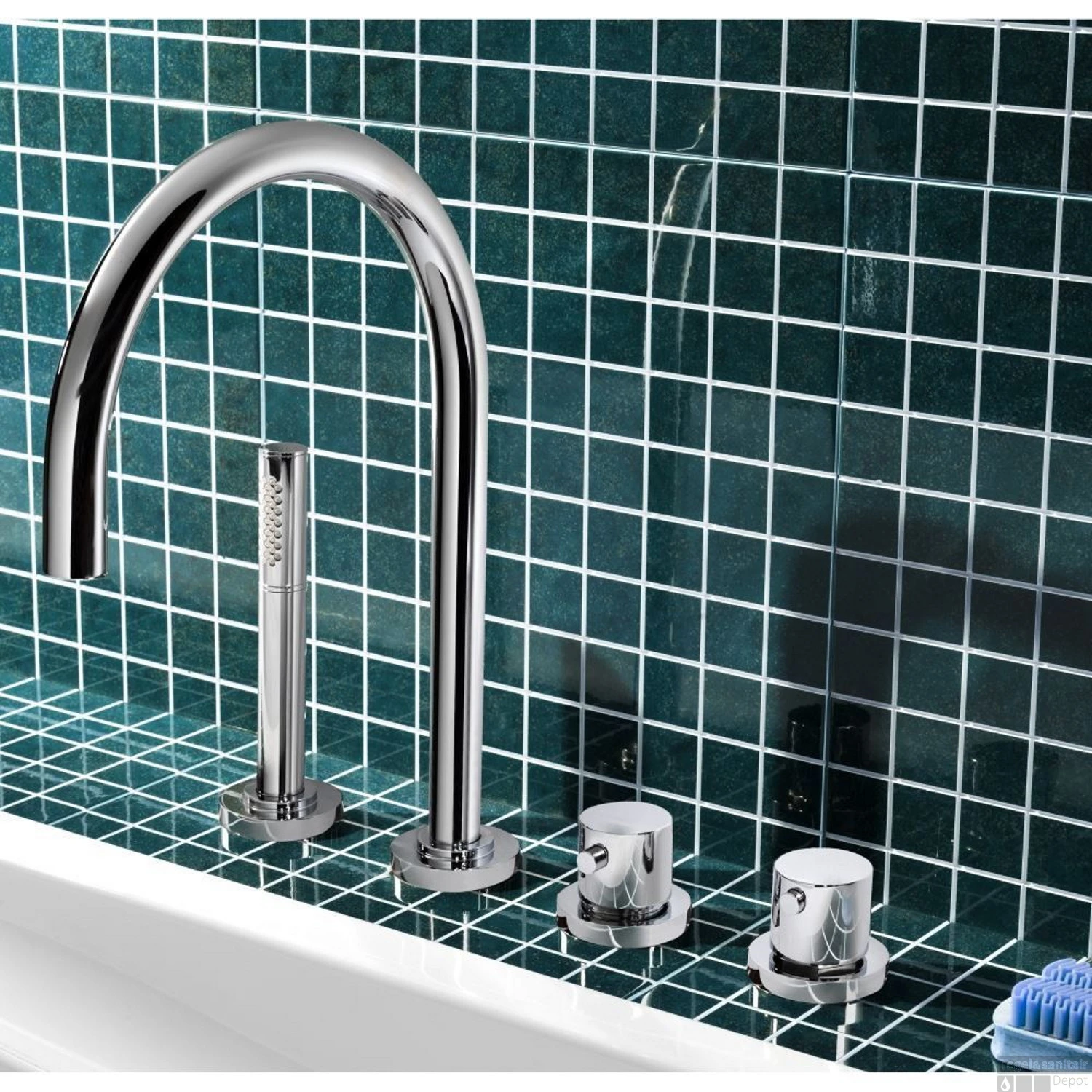 Met een badrandkraan is de volledige kraan netjes weg gewerkt in de rand van het bad! Het enige wat u ziet zijn de knoppen, de kraan en handdouche. De doucheslang zal dus nooit in de weg kunnen zitten terwijl u lekker aan het genieten bent van uw bad moment.