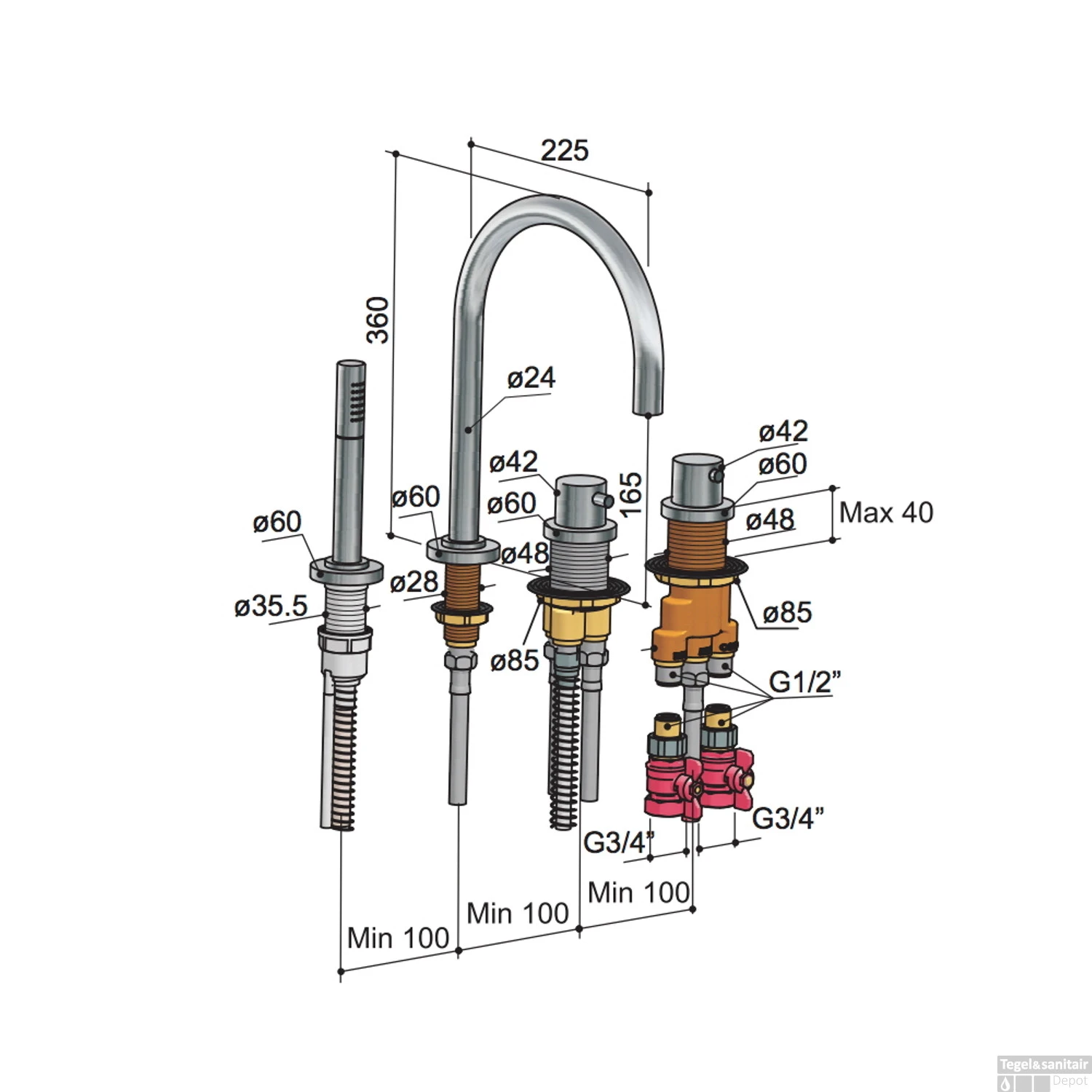 De chromen kraan is een thermostaatkraan voorzien van 4 elementen, ook wel 4-gats genoemd. U ziet de kraan, de handdouche en 2 knoppen. Met de 2 knoppen bedient uw het warm en koud water en ook gelijk de stroming snelheid van het water. Het fijne van een thermostaatkraan, is dat het door u ingestelde temperatuur van het water exact gelijk blijft. Via thermostatische kleppen wordt het koude en hete water zo gemengd, dat het water een constante temperatuur heeft. Wanneer de watertoevoer wijzigt, reageert de thermostaat direct.