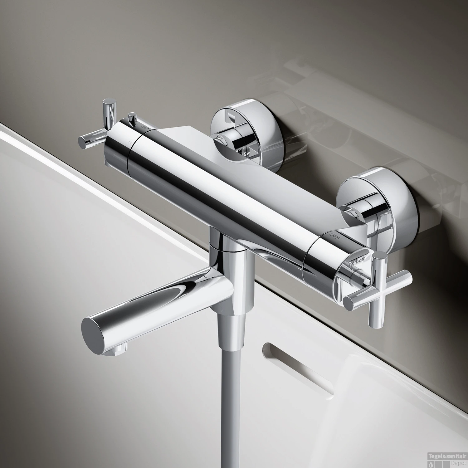 De praktische badkraan voorzien van thermostaatfunctie. Het fijne van een thermostaatkraan, is dat het door u ingestelde temperatuur van het water exact gelijk blijft. Via thermostatische kleppen wordt het koude en hete water zo gemengd, dat het water een constante temperatuur heeft. Wanneer de watertoevoer wijzigt, reageert de thermostaat direct.