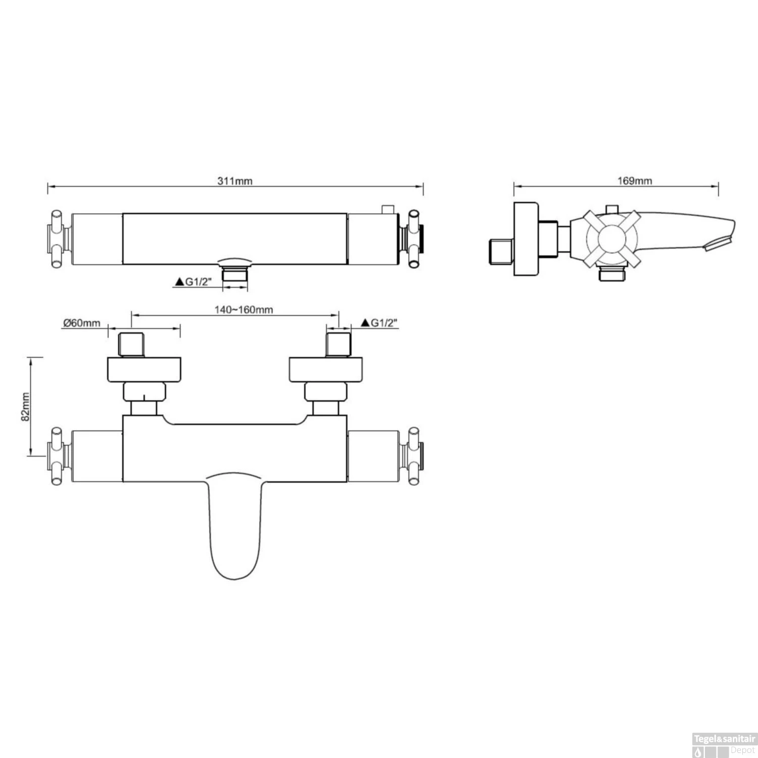 Specificaties Badthermostaat Wiesbaden Cool Touch Cross Chroom 15cm HOH:
