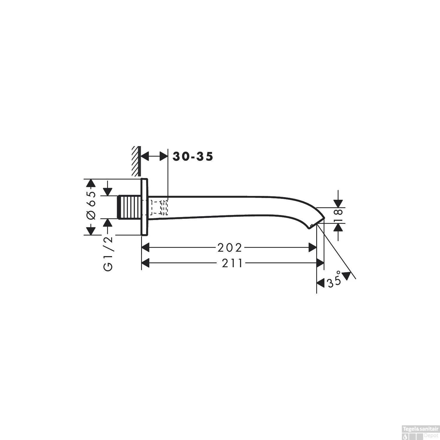 Deze prachtige baduitloop komt uit de Vivenis serie van HansGrohe. De uitloop wordt gemonteerd aan de muur. Maak uw set compleet door de uitloop te combineren met een inbouw badmengkraan. Deze vaste uitloop heeft een rechthoekige vorm, hierdoor geeft het een moderne waterval straal.