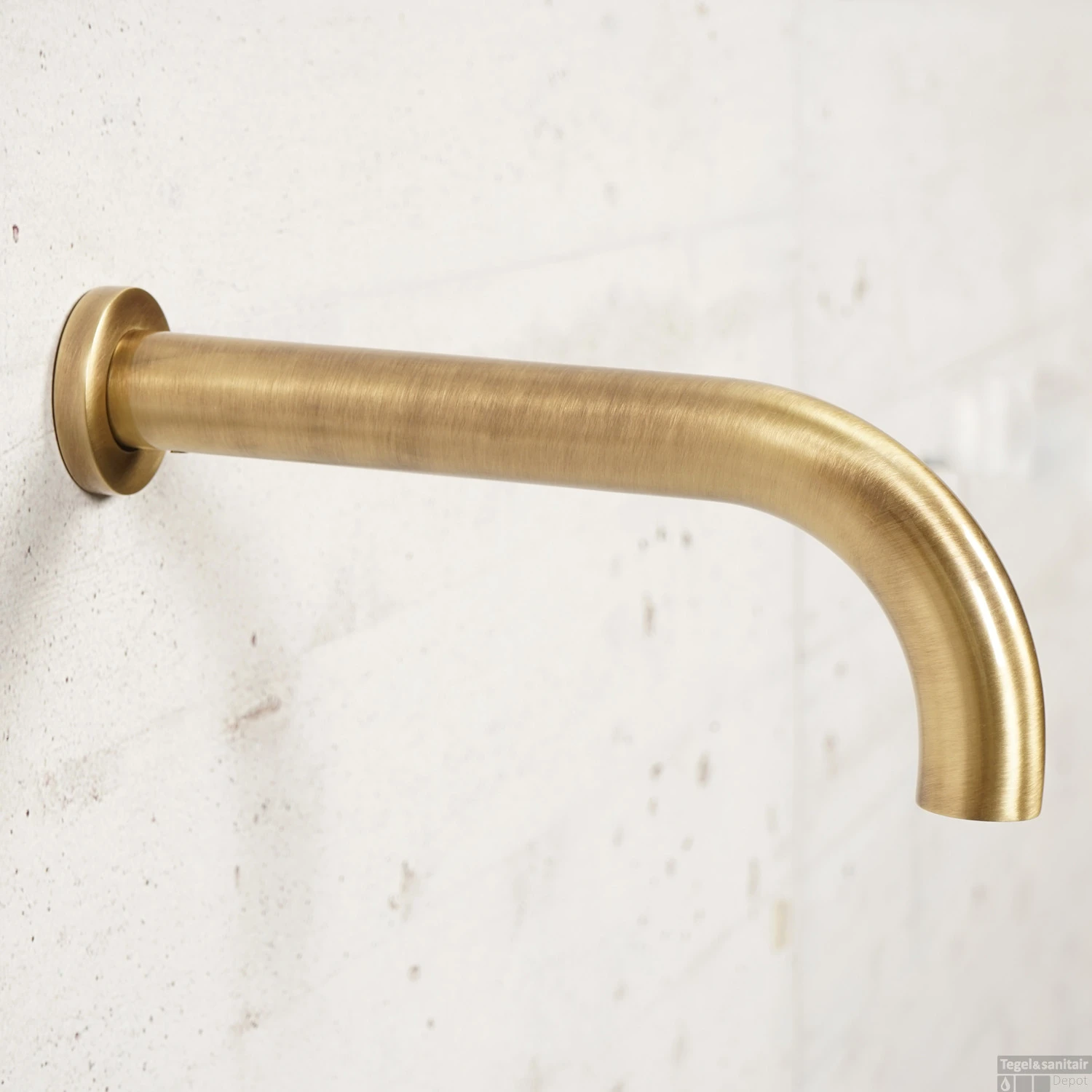 Deze mooie baduitloop van het merk Salenzi komt uit de serie Giro. Hij is gemaakt van messing met een kleurcoating. Bij deze kraan is dat een Gouden coating wat ervoor zorgt dat deze kraan een luxe uitstraling krijgt. De uitloop heeft een lengte van 20 cm en wordt geleverd met de ring die aan de achterkant bevestigd zit en het bevestigingsmateriaal.