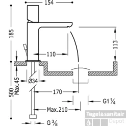 Wastafelmengkraan Inbouw Tres Study Exclusive 2-Gats Gebogen Uitloop 18 Cm En Hendel Mat Zwart
