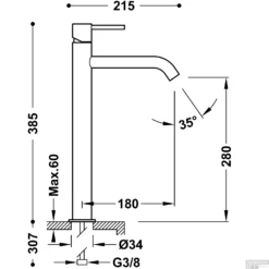 Wastafelmengkraan Tres Study Exclusive 38,5 Cm 1-Knop Rond RVS