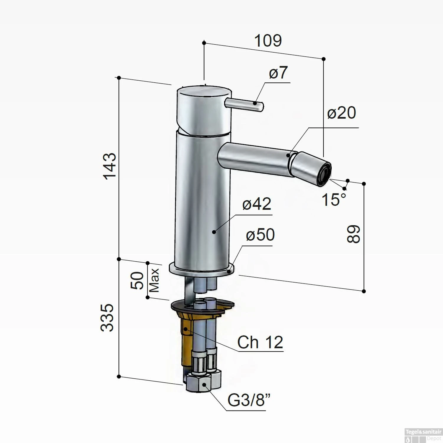 Specificaties Bidetmengkraan Hotbath Cobber Chroom