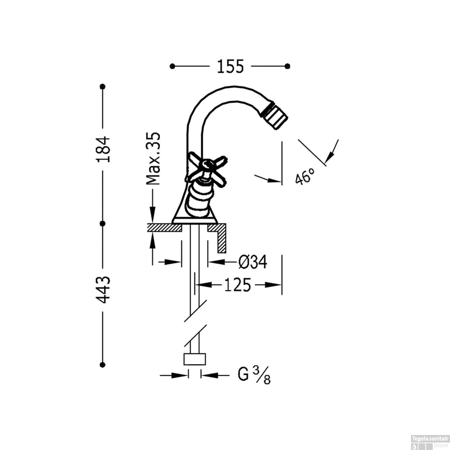 Specificaties Bidetmengkraan Tres Clasic 2 Kruisgreep RVS: