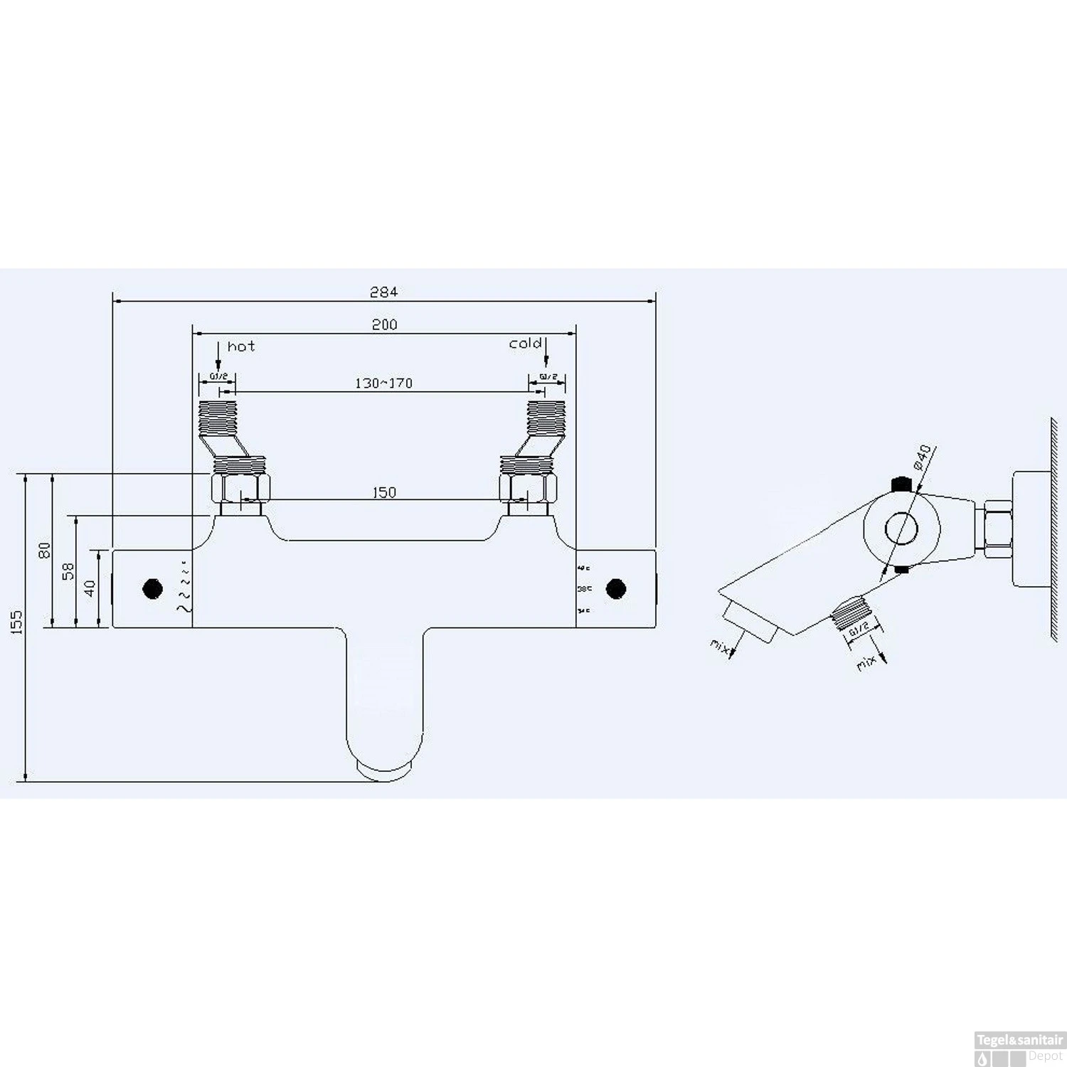 Specificaties BWS Badkraan Janero Thermostatische Mat Zwart: