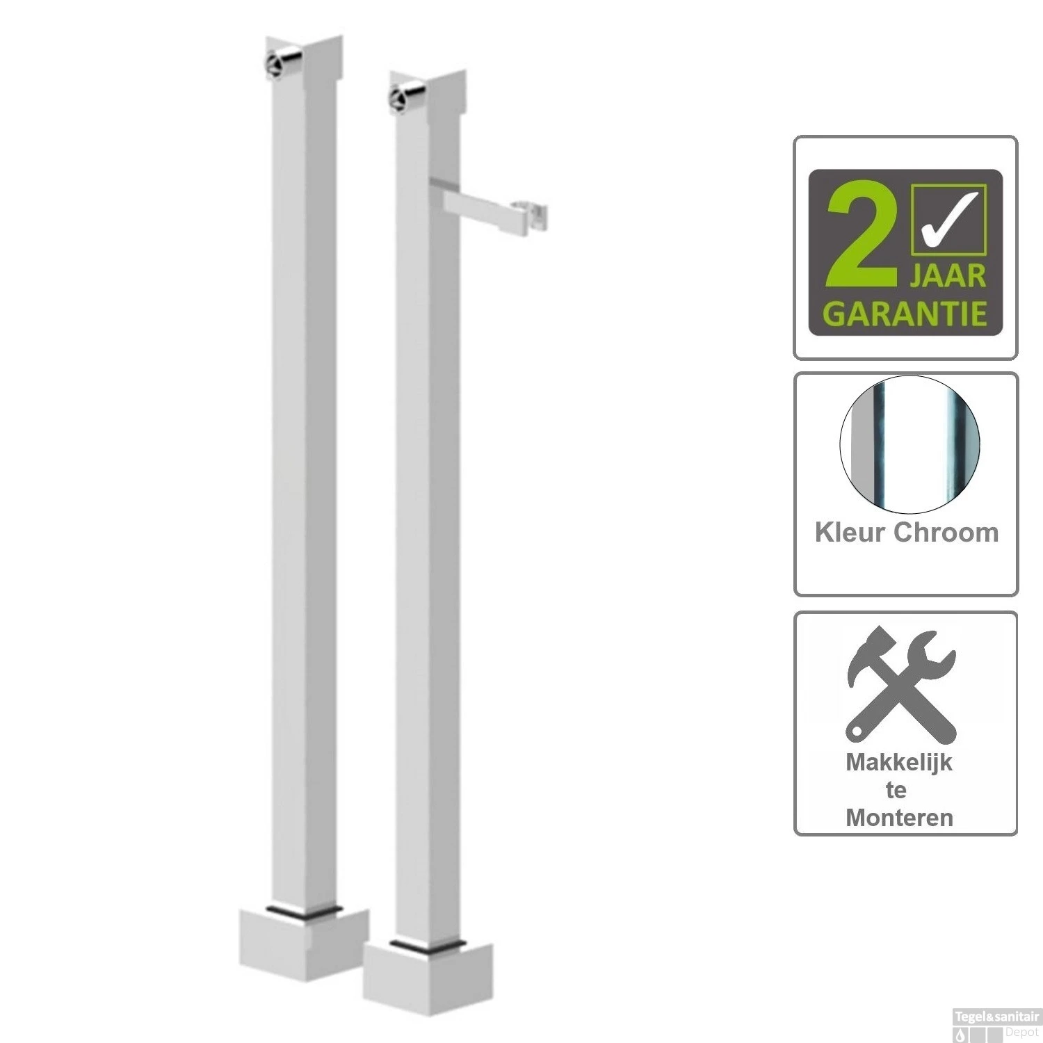 Specificaties BWS Badkraankoppelingen Universele Vrijstaande Vierkant: