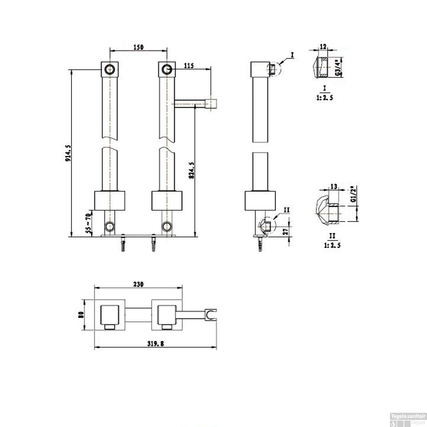 - – 3/4″ kraanaansluitingen