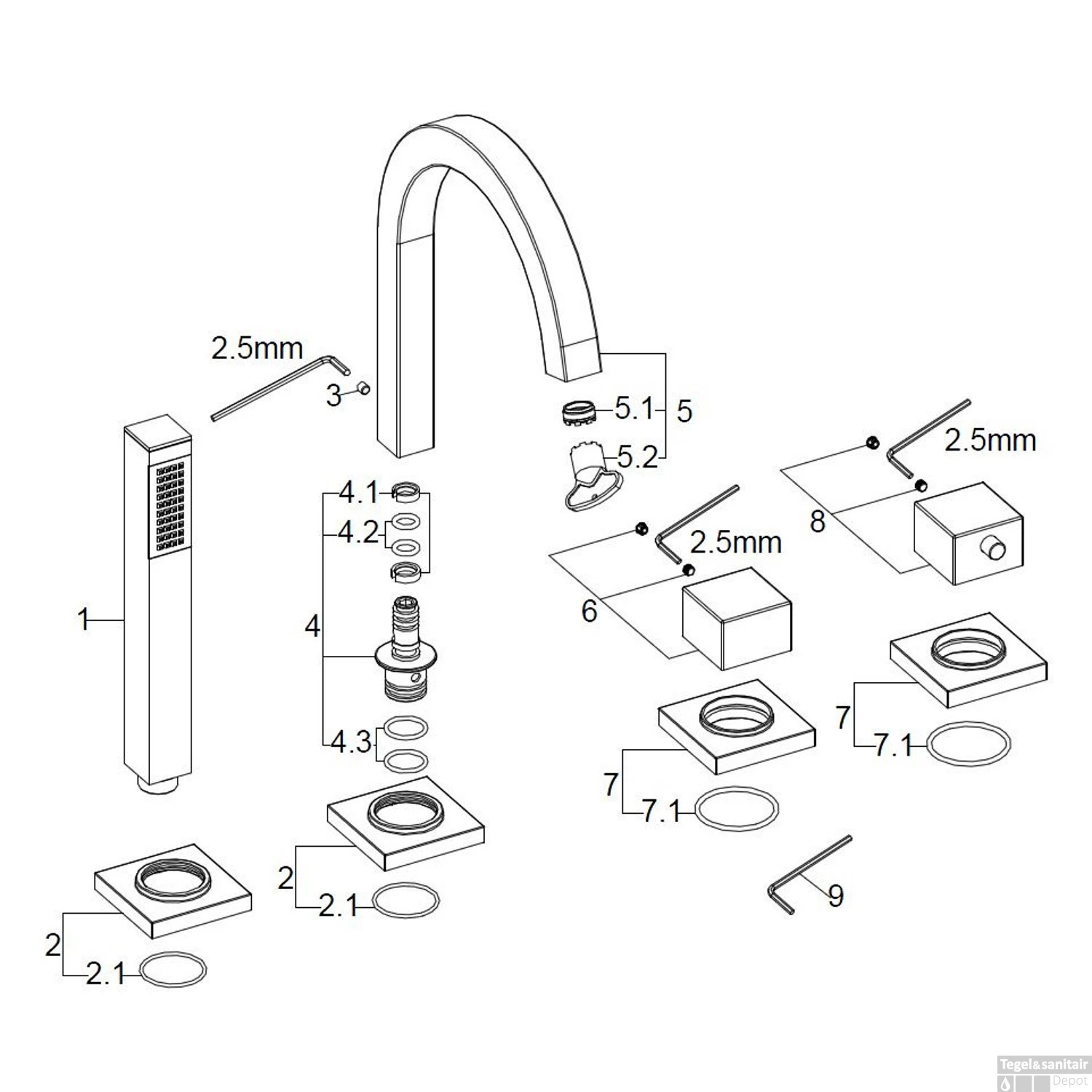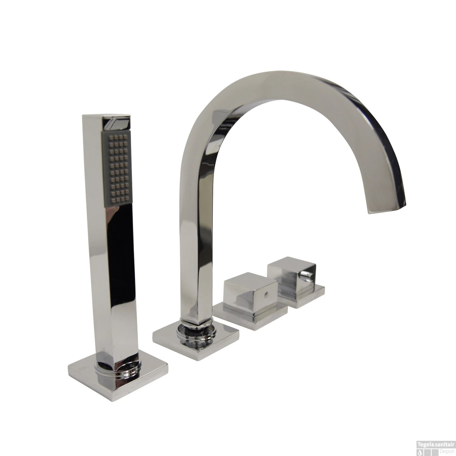 Deze badrandthermostaat afbouwset is te combineren met het 4-gats inbouwdeel van het merk Boss & Wessing. Indien u dit wenst, vergeet deze dan niet bij te bestellen! De afwerking van deze set is chroom. Met de juiste behandeling zult u jarlang plezier hebben van de kwaliteit en glans. Deze set bestaat uit een vierkante handdouche messing/verchroomd, een vierkante omstelknop chroom, een vierkante thermostaatknop met blokkering op 38 graden en een vierkante uitloop chroom.