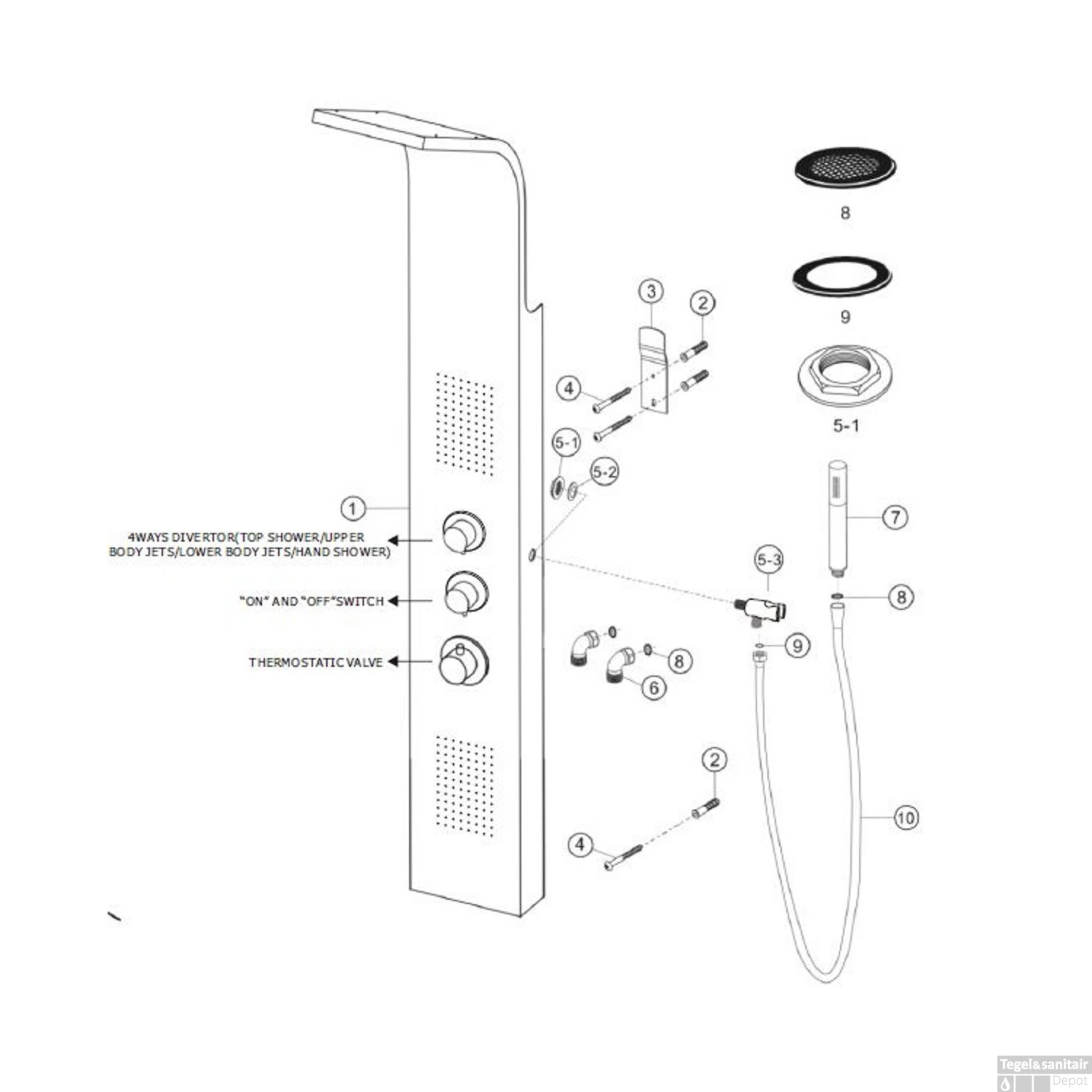 Specificaties BWS Douchekolom Ernie met Thermostatische Kraan RVS