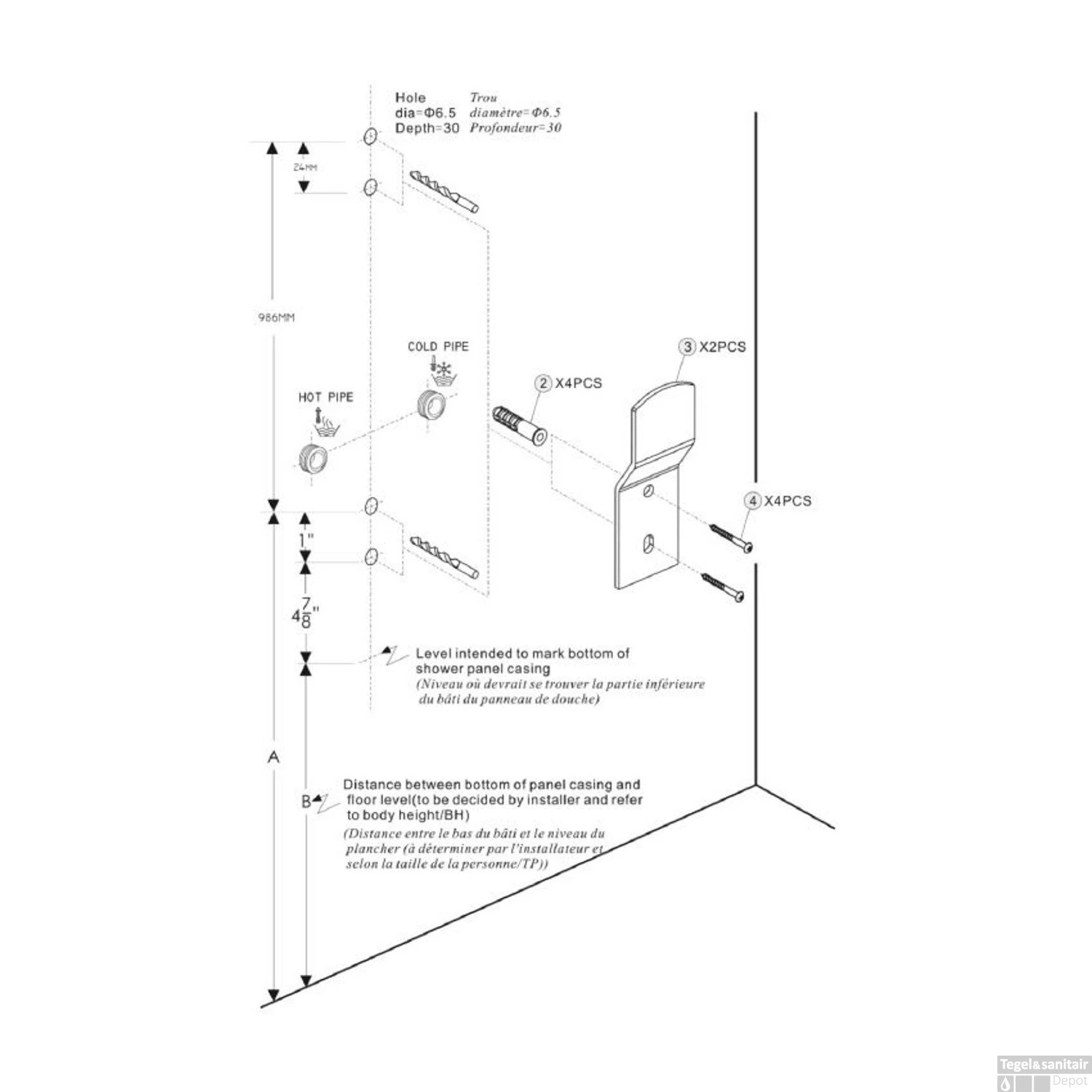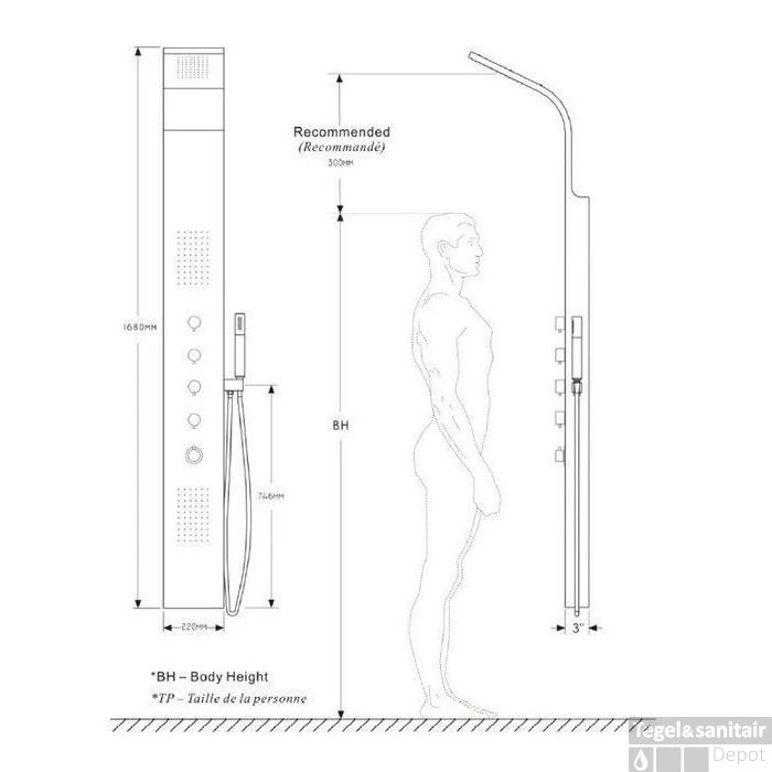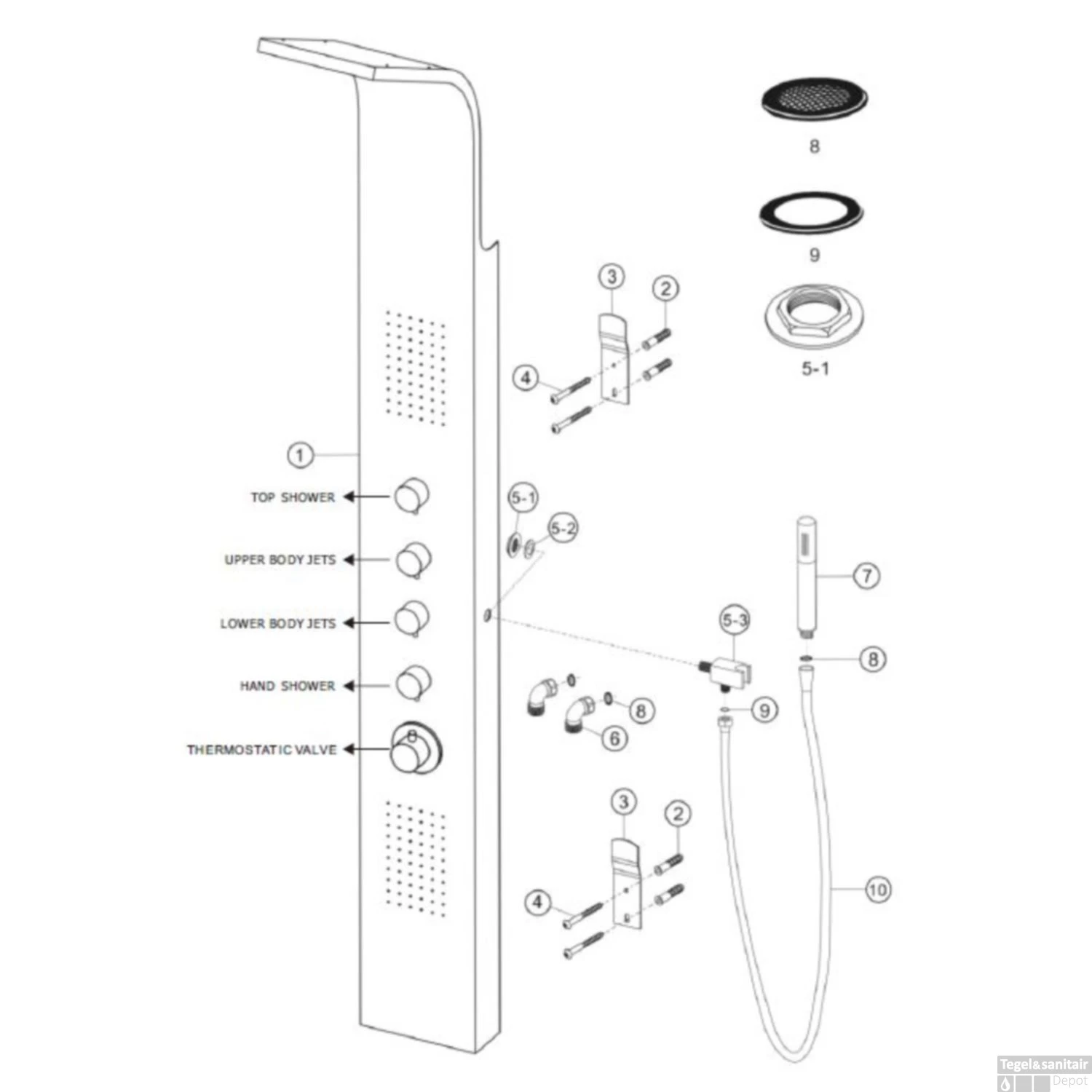 Specificaties BWS Douchepaneel Haron met Thermostaat kraan RVS