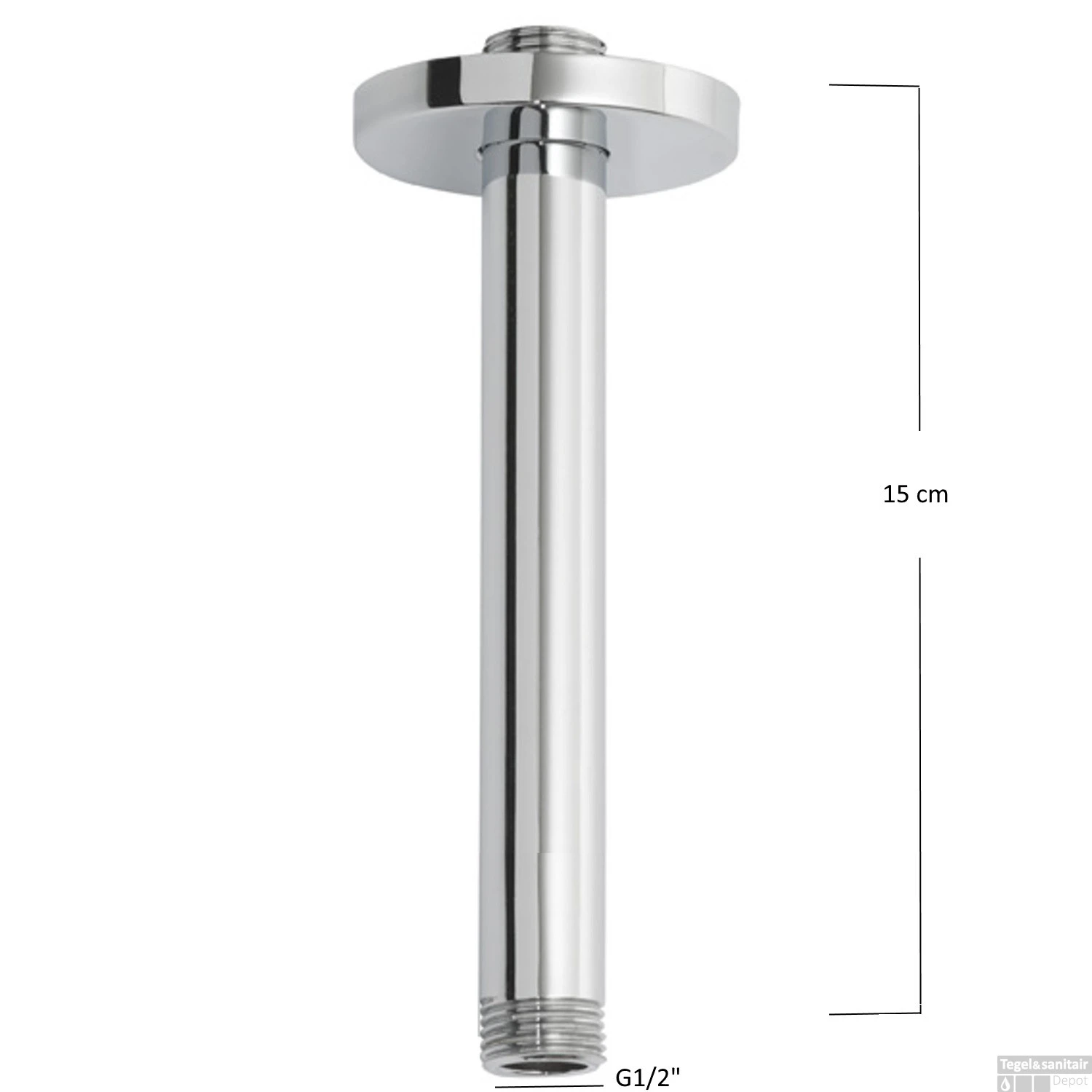 Met deze plafonduitloop bent u verzekerd van een luxe en chique uitstraling in uw badkamer. Deze plafonduitloop is de enige verbinding tussen uw plafond en uw douchekop. Met de chrome afwerking behoudt het met de juiste behandeling jarenlang zijn glans en kwaliteit.