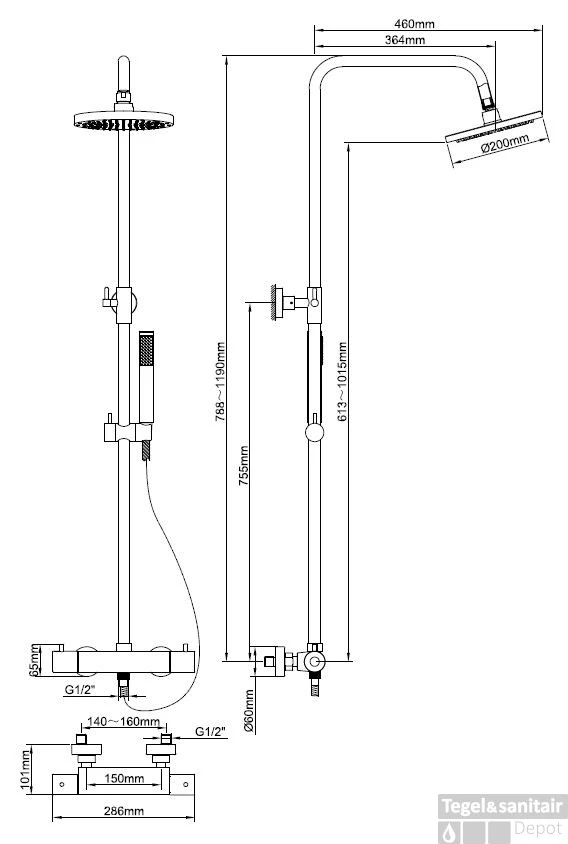 - – Voorzien van doucheslang van 150cm (verstelbaar)