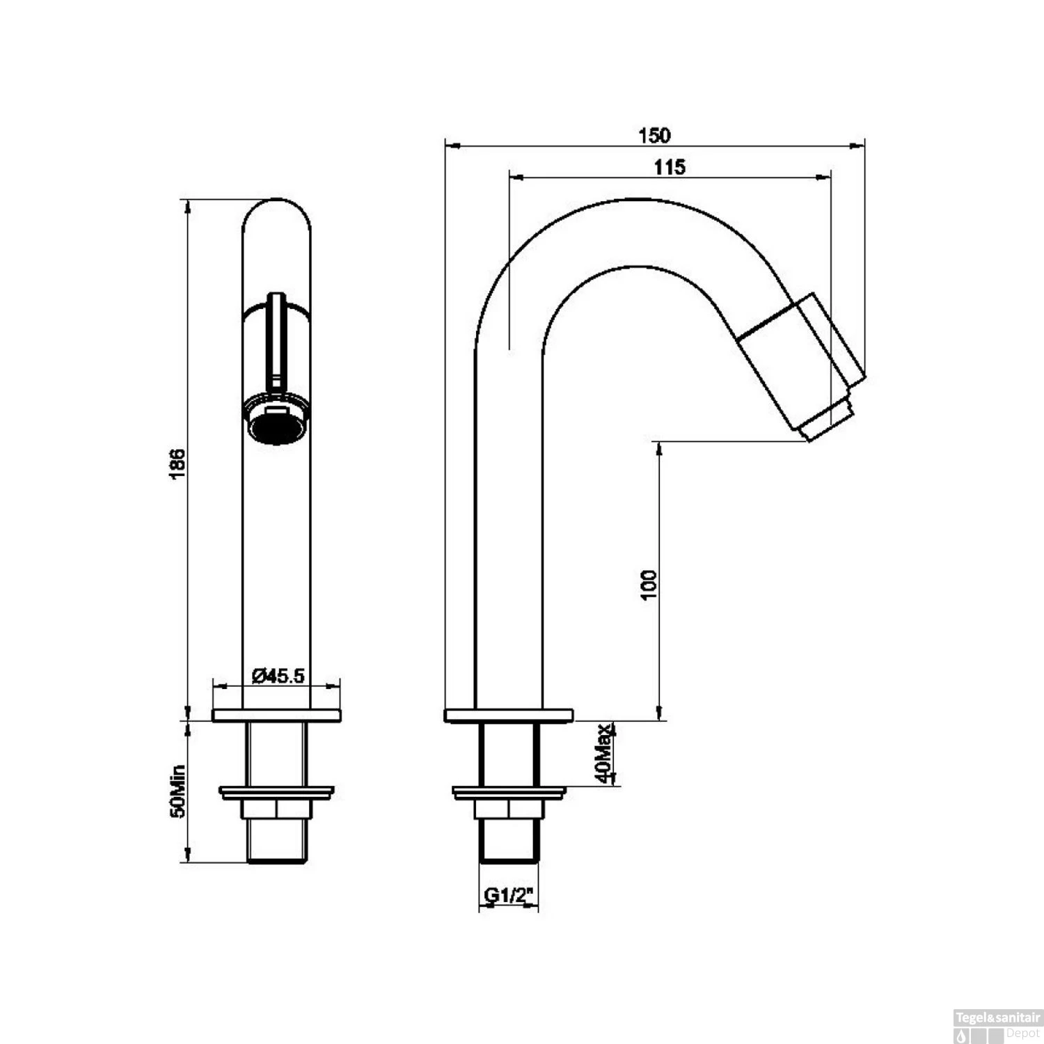Afmetingen: BWS Shiva Toiletkraan 1/2” Chroom Met Keramisch Binnenwerk: