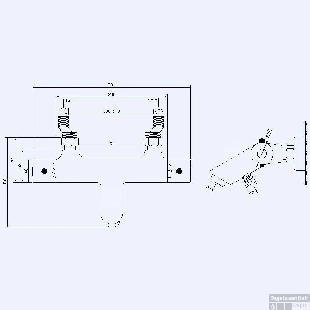 De badthermostaat heeft een hart-op- hart van 15 centimeter. Wanneer uw leidingen een andere hartafstand hebben, kan u de kraan alsnog aansluiten door de meegeleverde S-koppelingen.