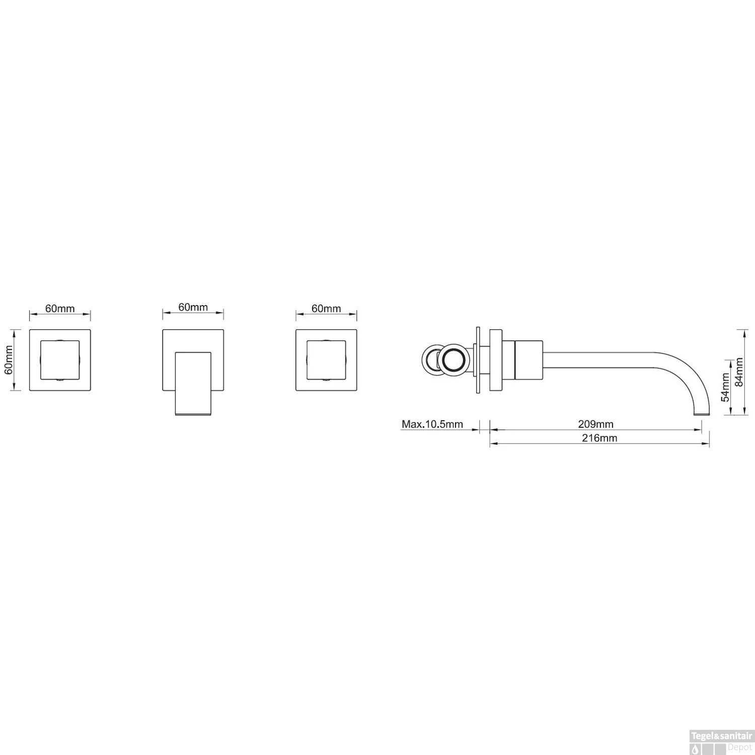 Specificaties BWS Wastafelkraan Inbouw Square 2- knops Chroom: