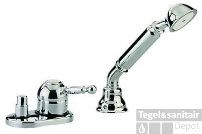 Badrandkraan Tres Clasic Mengkraan Gebogen Incl. Omstelknop En Handdouche Verouderd Messing