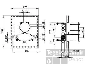 Inbouw Thermostaatkraan Herzbach Living Rechthoek Veiligheidsbegrenzer Chroom (vierkante Hendels)