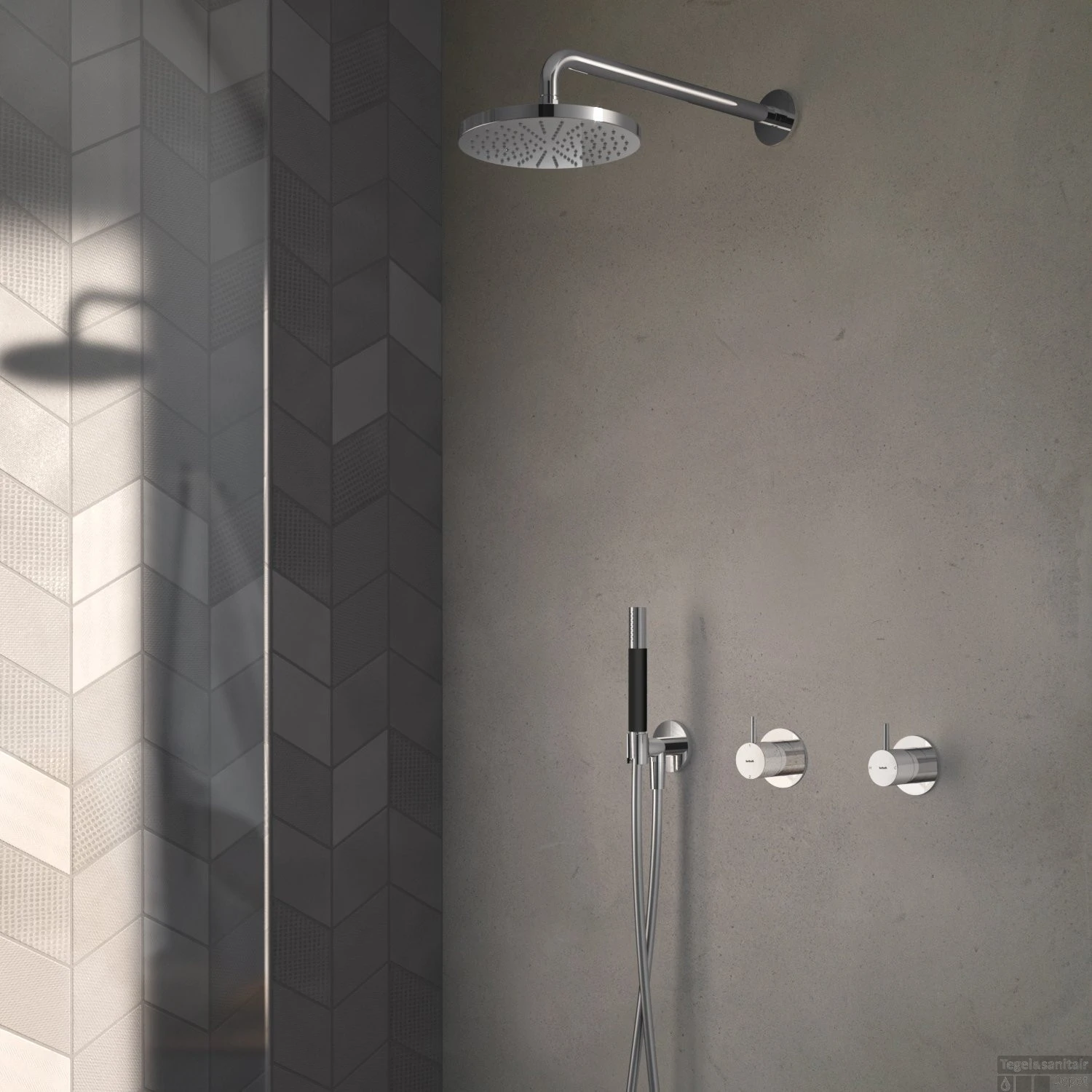 - Omstel inrichting: Handdouche en Regendouche, 2-weg omstel