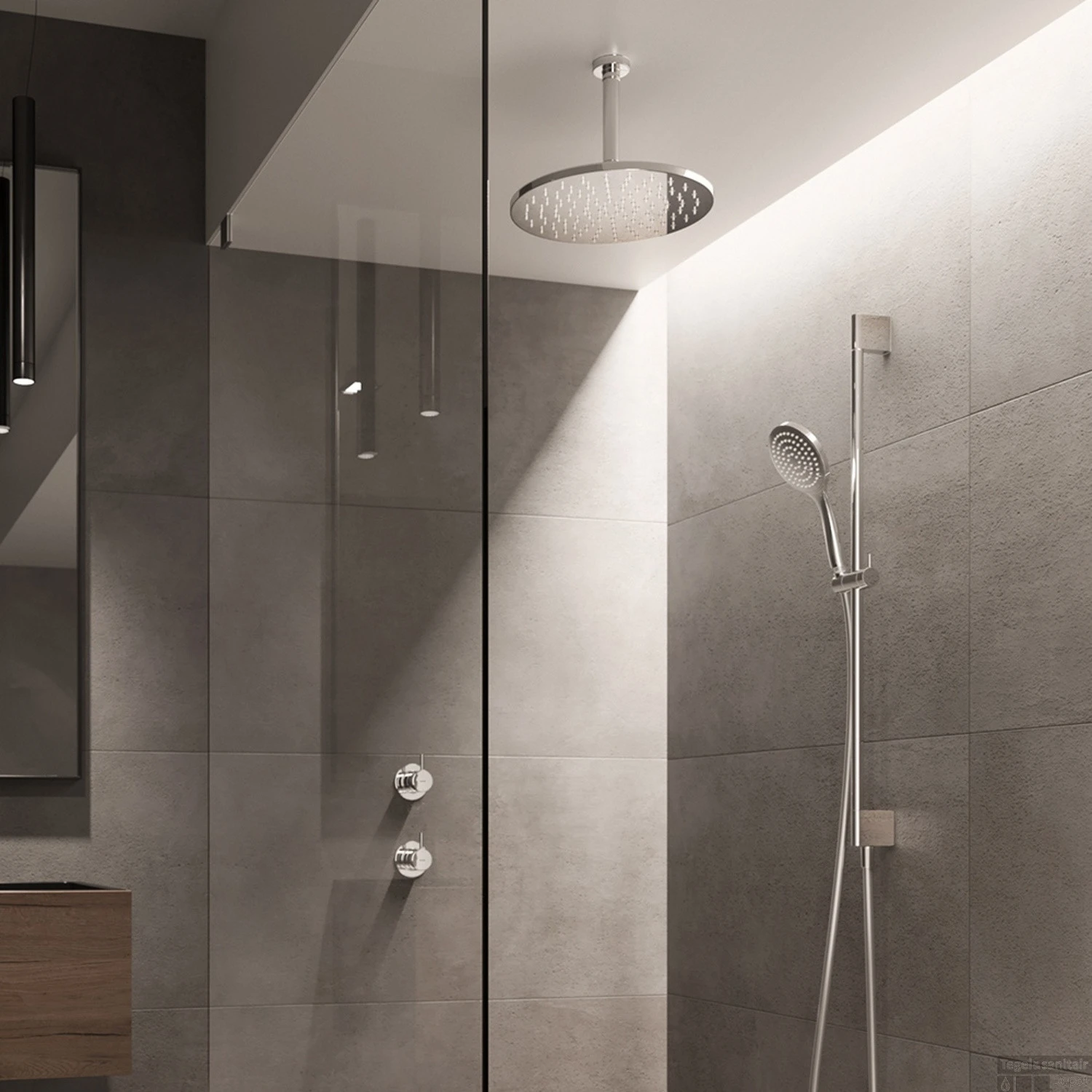 - Afmeting hoofddouche: Doorsnee van 20 of 30 cm.