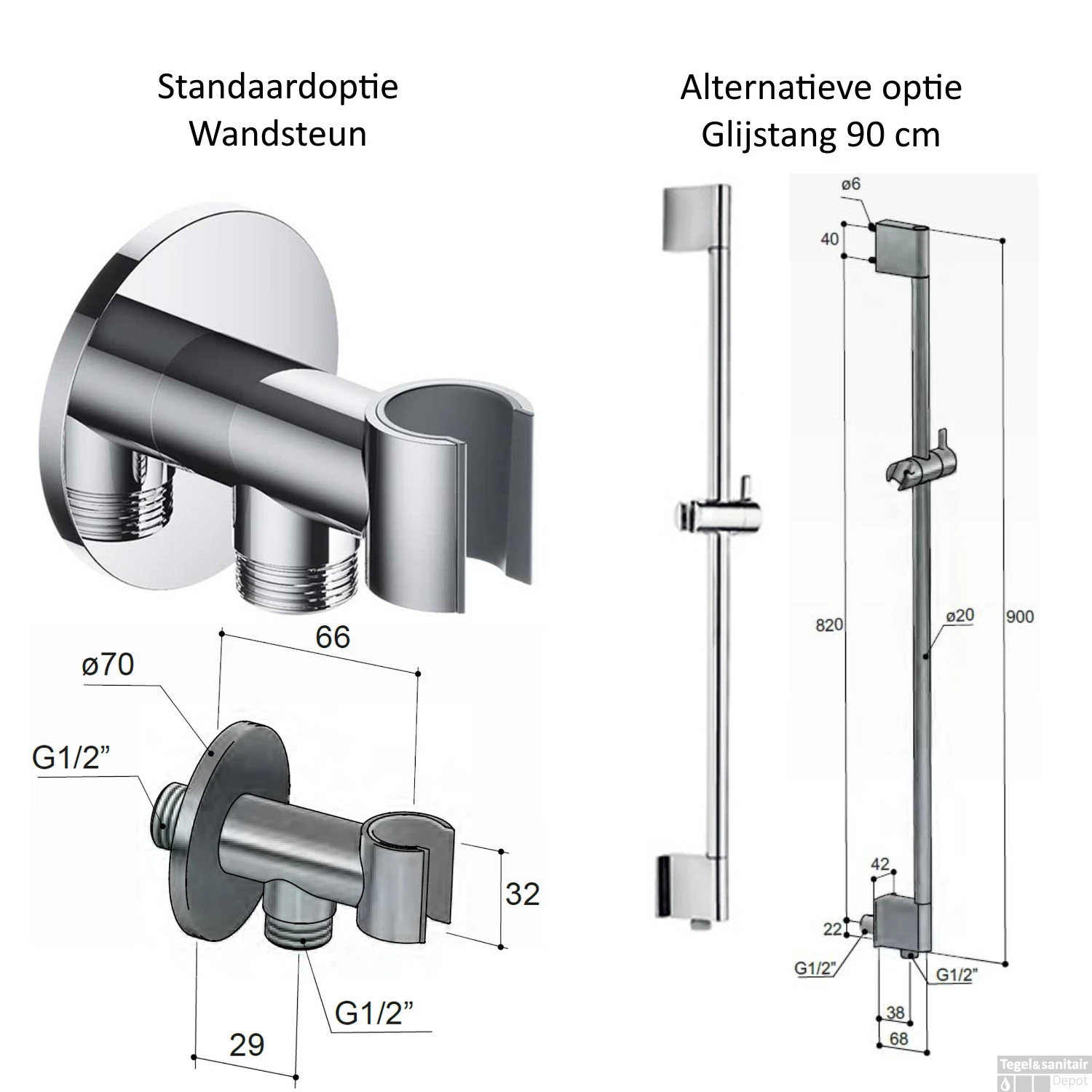 - In hoogte verstelbaar: Handdouche is in hoogte verstelbaar (indien er voor glijstang gekozen wordt)