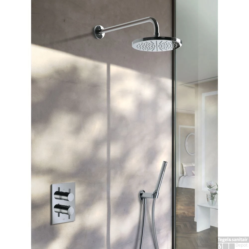 De Hotbath IBS 2A doucheset is ontwikkeld volledig in stijl van de Laddy serie. Deze set wordt compleet geleverd met inbouwthermostaat met 2-weg stop-omstelkraan, handdouche en hoofddouche. Deze thermostaat beschikt over een vierkante achterplaat.