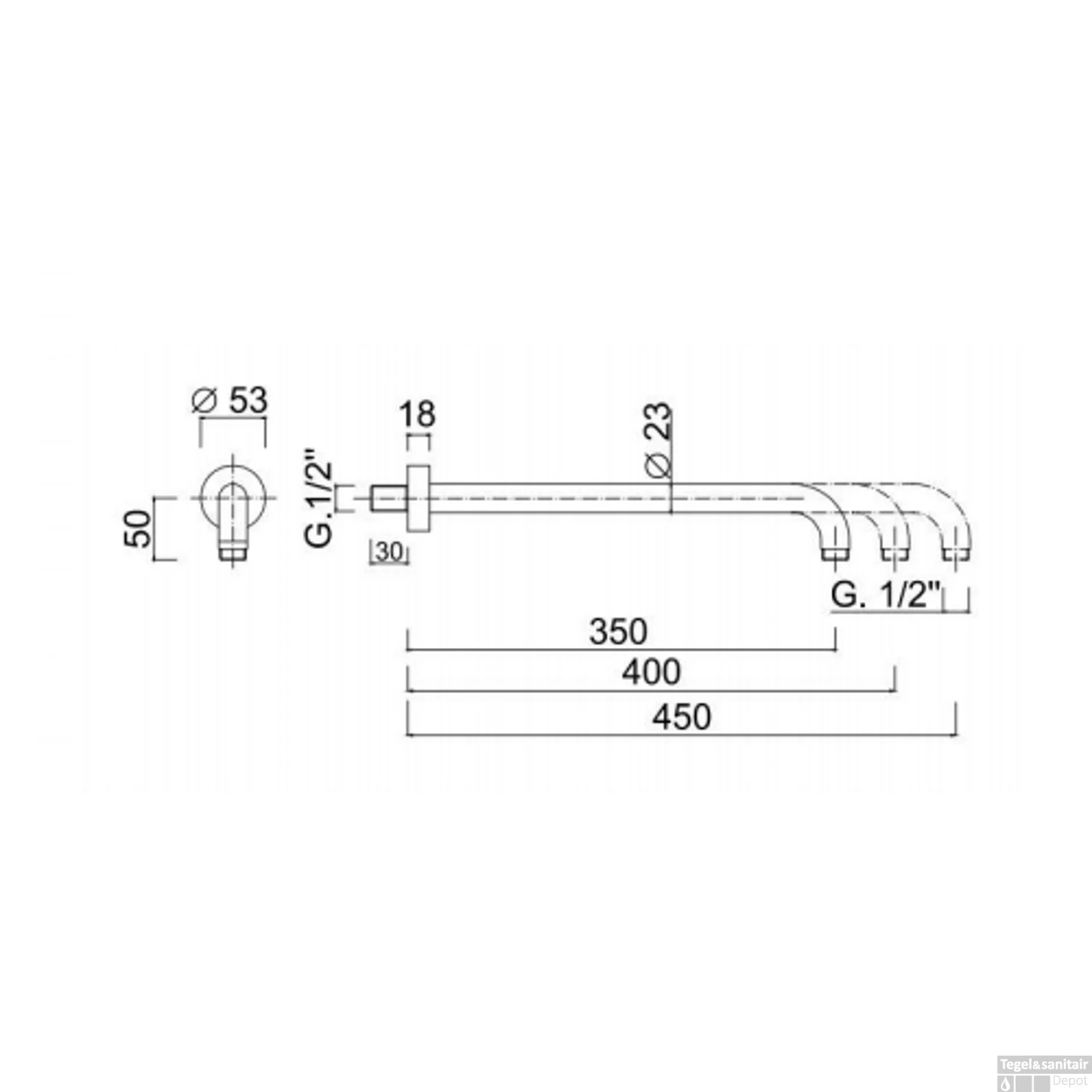 De douchearm wordt zonder douchekop geleverd. Het heeft een universele aansluiting van 1/2″ waardoor vrijwel elke douchekop geschikt is voor de Giulini douchearm.