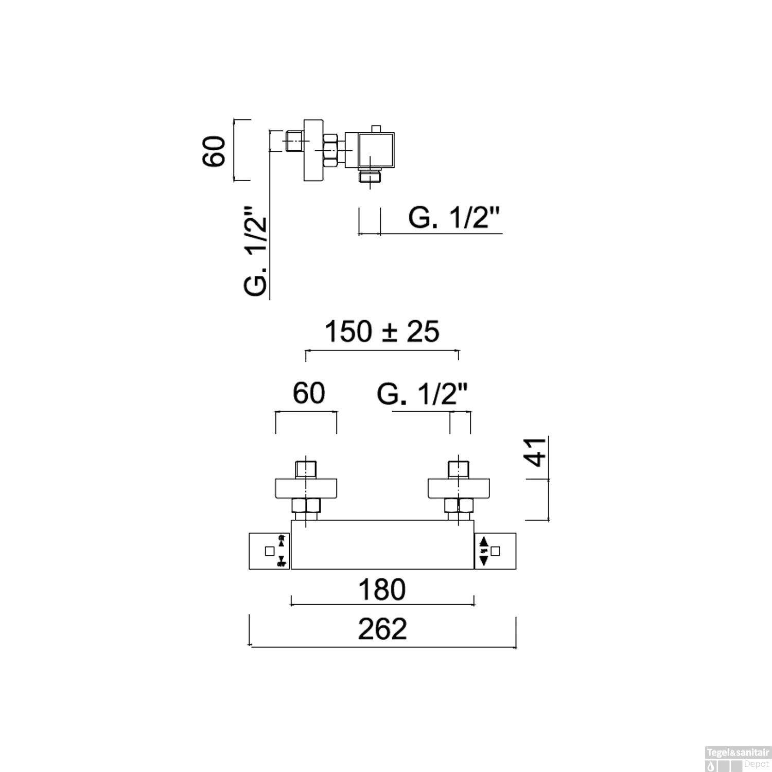 Specificaties Douchekraan Opbouw Sanimex Giulini Thermostatisch HoH 15cm Chroom: